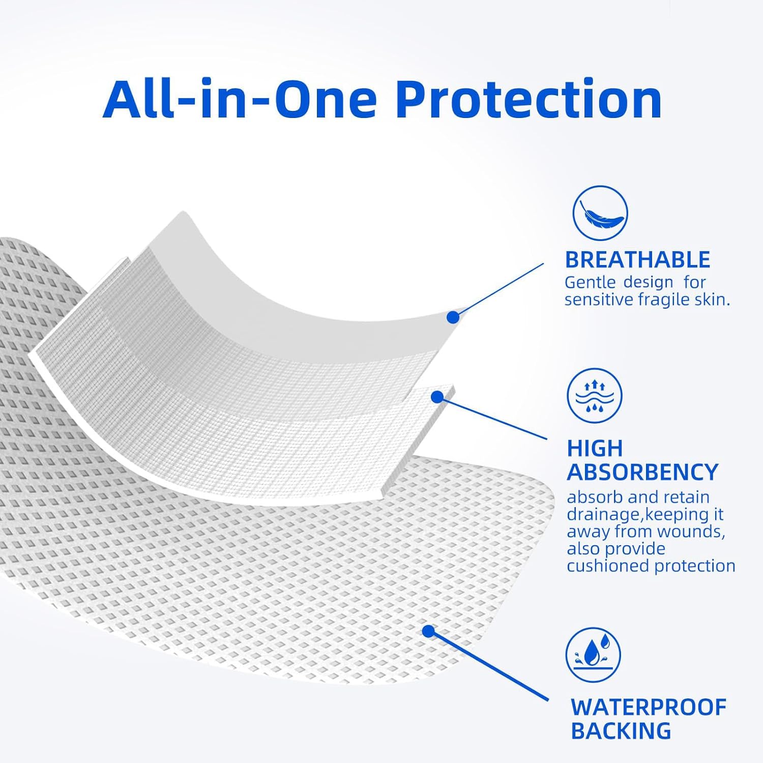 50 Count Adhesive Gauze Island Dressing 4″ x 4″, Water-Resistant Wound Dressing, Sterile & Absorbent Medical Grade Dressing Pads First Aid Pads FSA Eligible