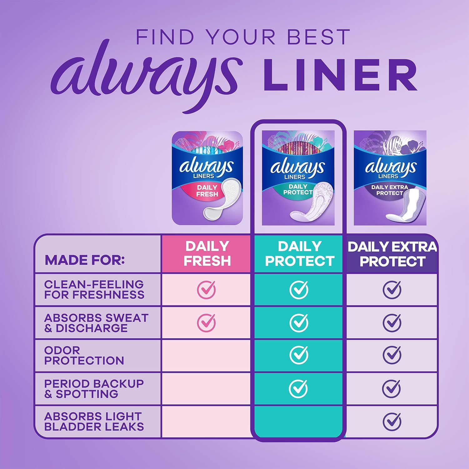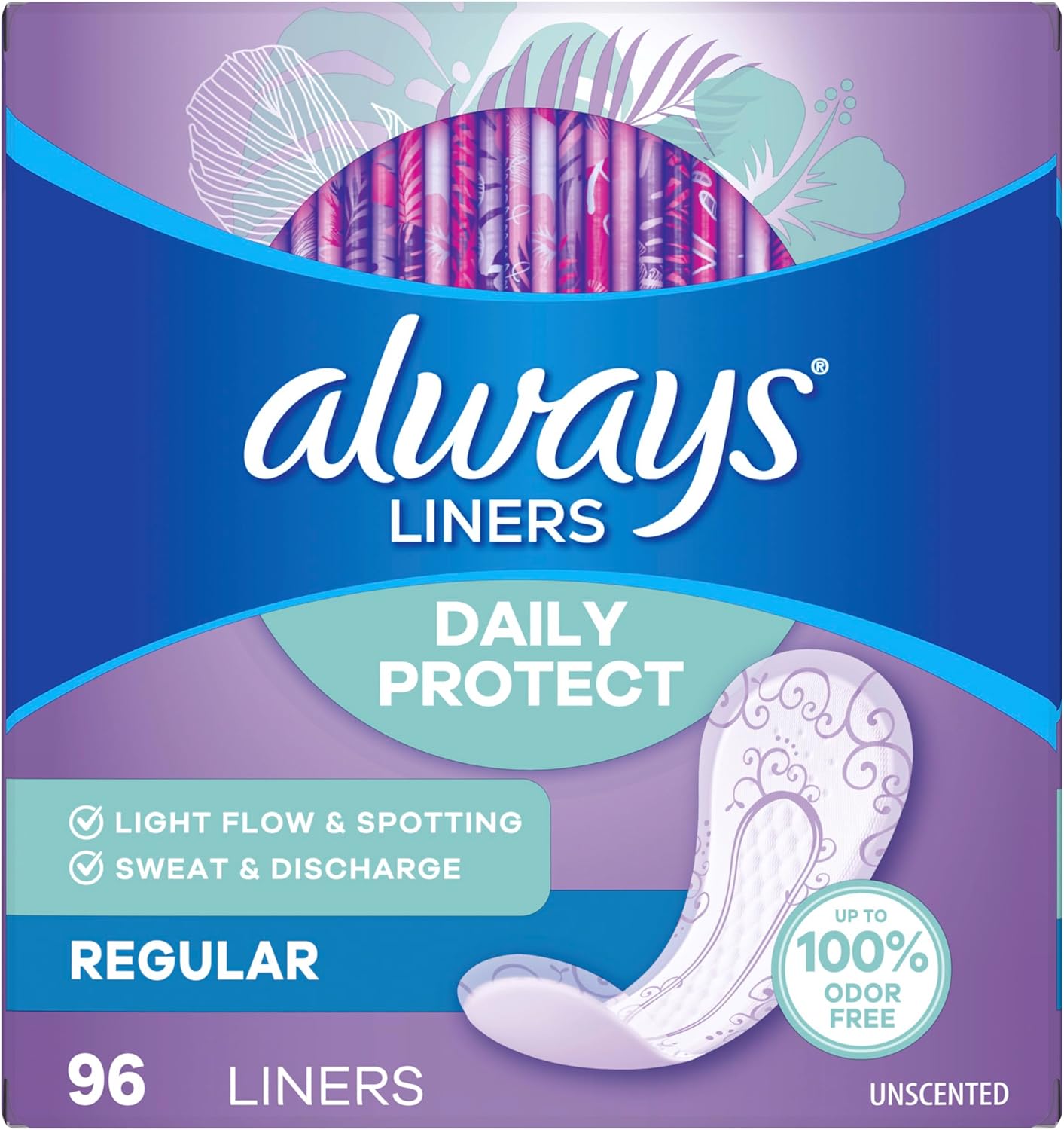 Always Panty Liners for Women Daily Protect Liners, Regular Length,96 Count