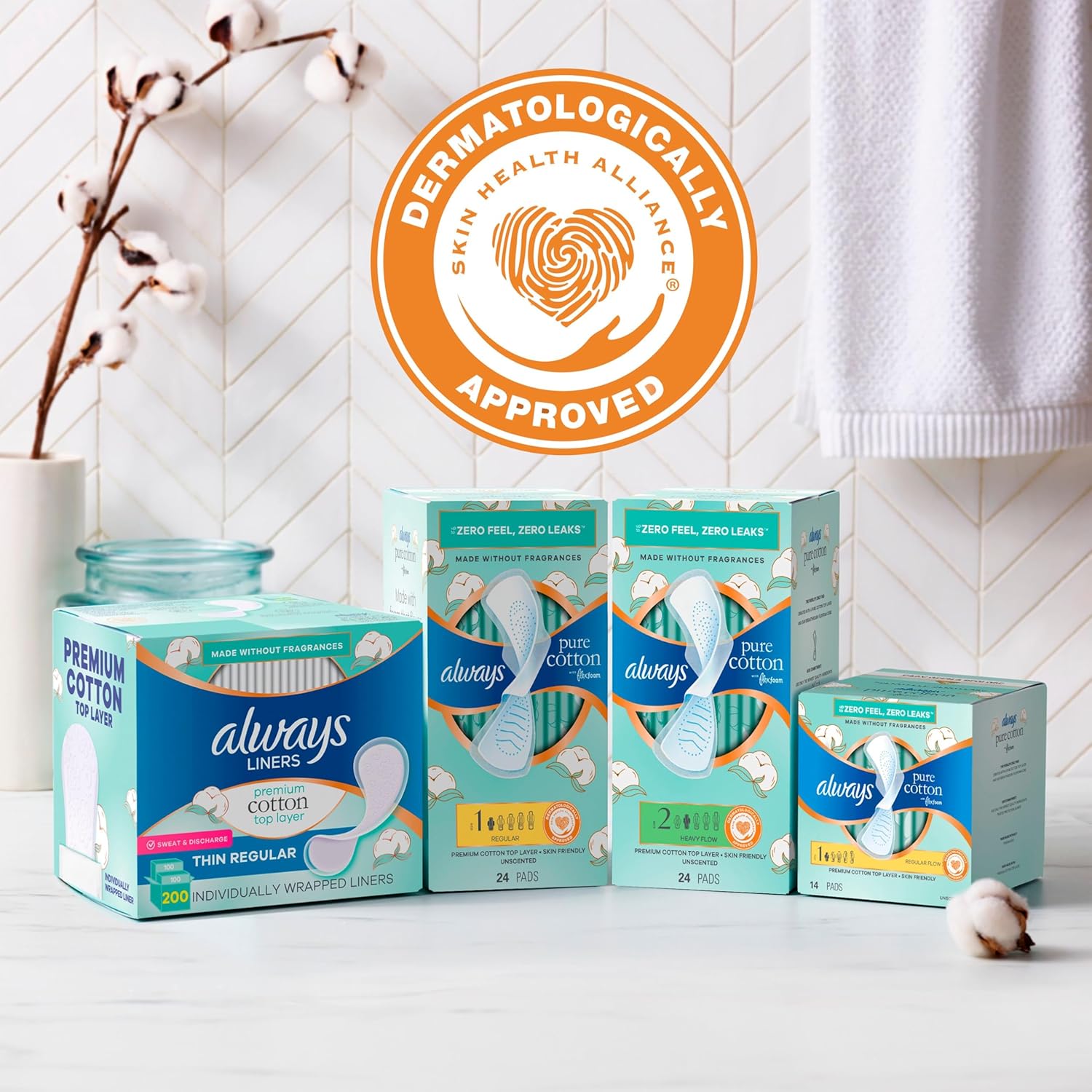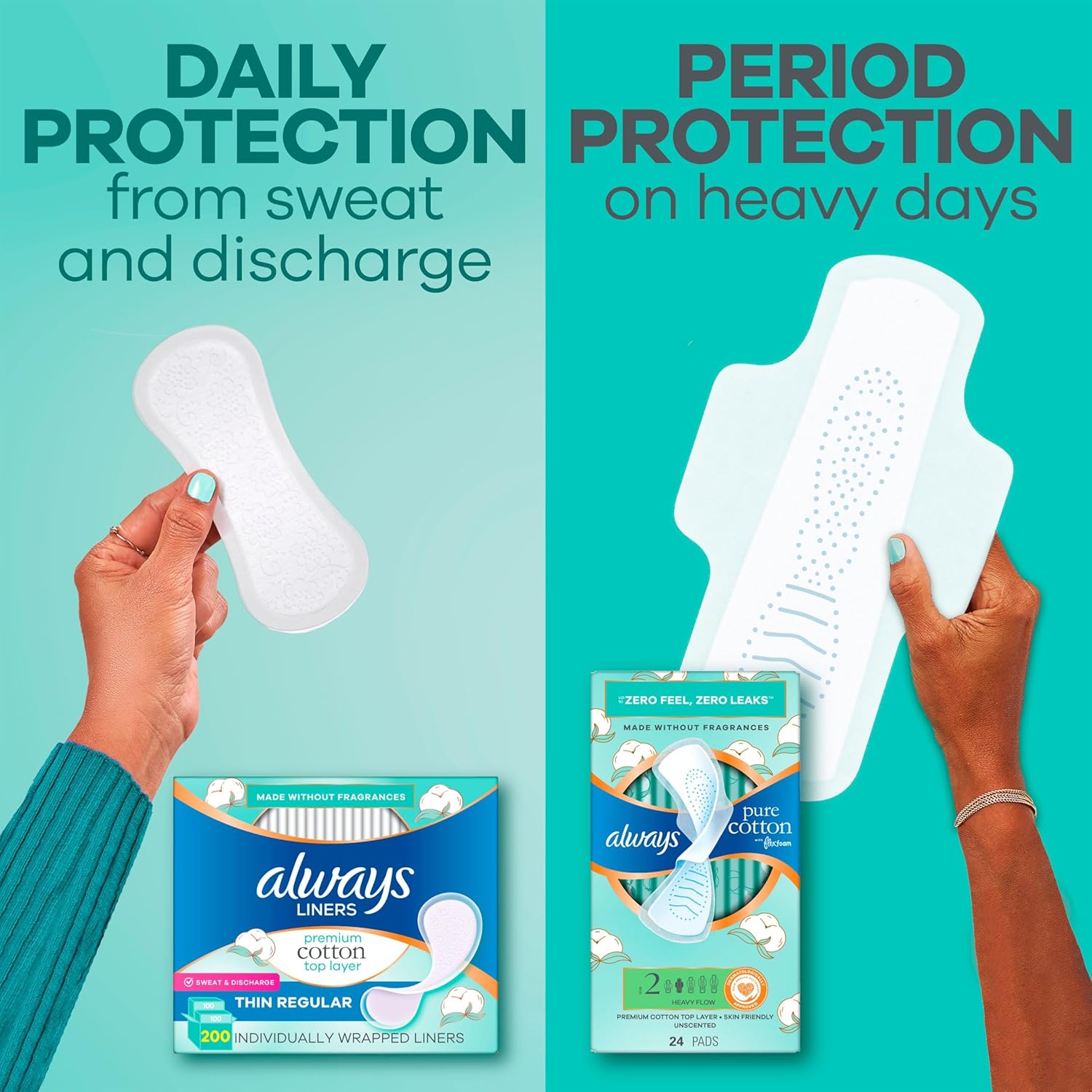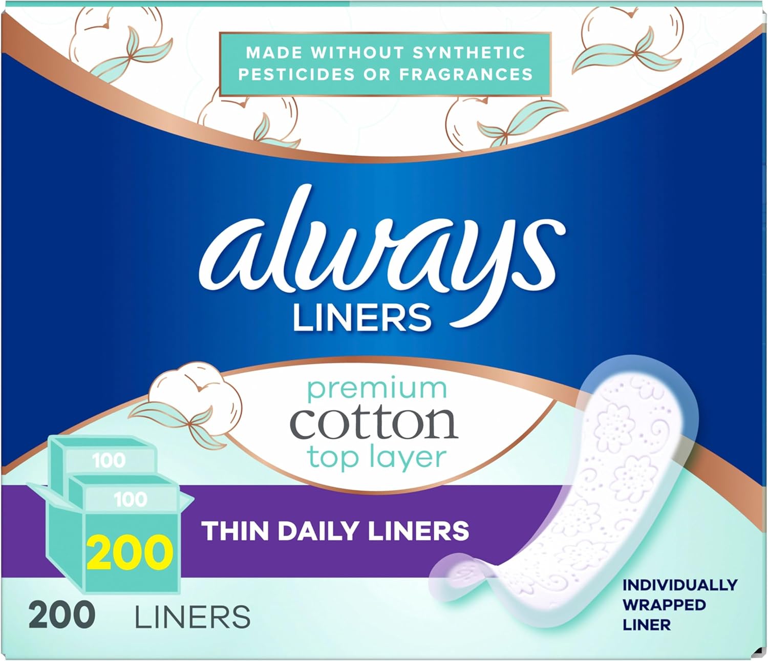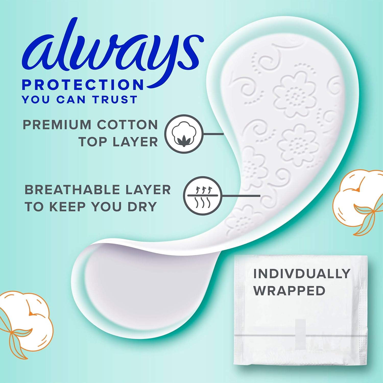 Always Panty Liners for Women Premium Cotton Liners 200 Count