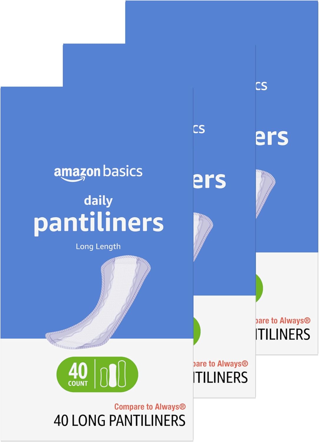 Amazon Basics Daily Pantiliner, Long Length, Feminine Pads for Women, Unscented, Comfortable Thin, 120 Count (3 Packs of 40) (Previously Solimo)