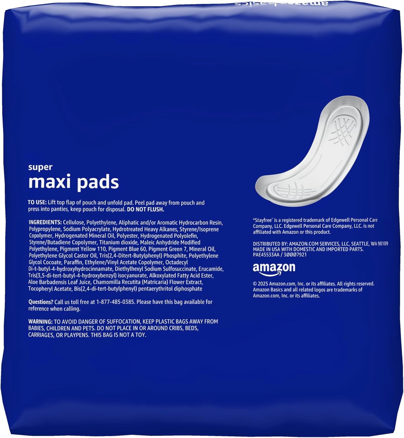 Amazon Basics Maxi Pads For Periods- Thick, Super Absorbency, Unscented, 48 Count, 1 Pack