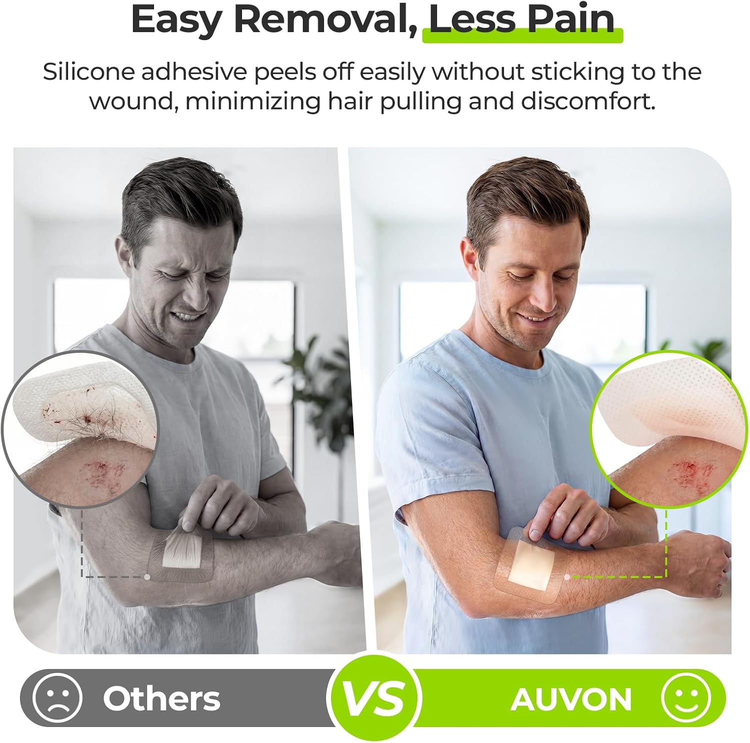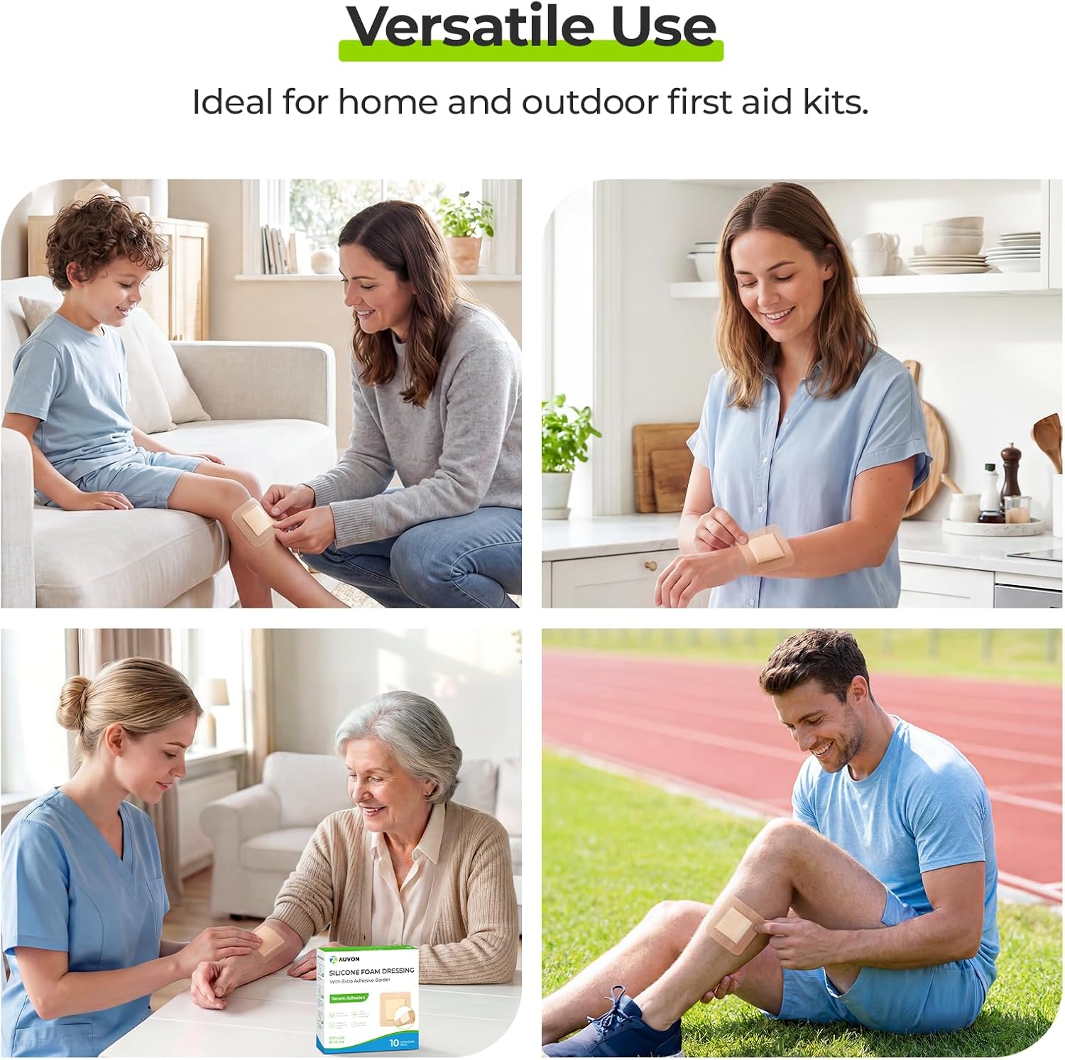 AUVON Silicone Foam Dressing with Large Adhesive Border, 3″ x 3″ 10 Packs Wound Dressing Bandage with High Absorbency, Waterproof Silicone Foam Pads for Wound Care & Protection Plus Cushioning