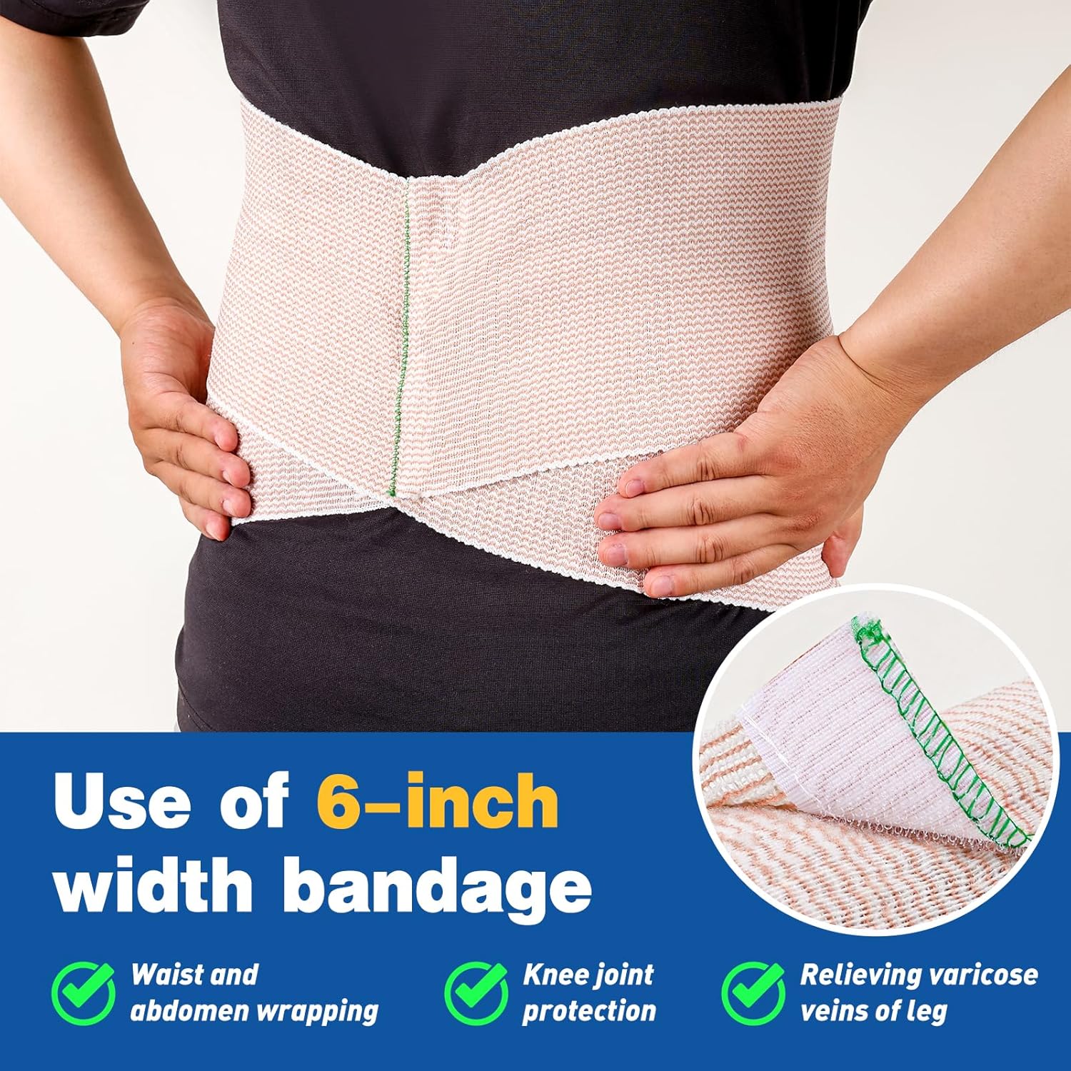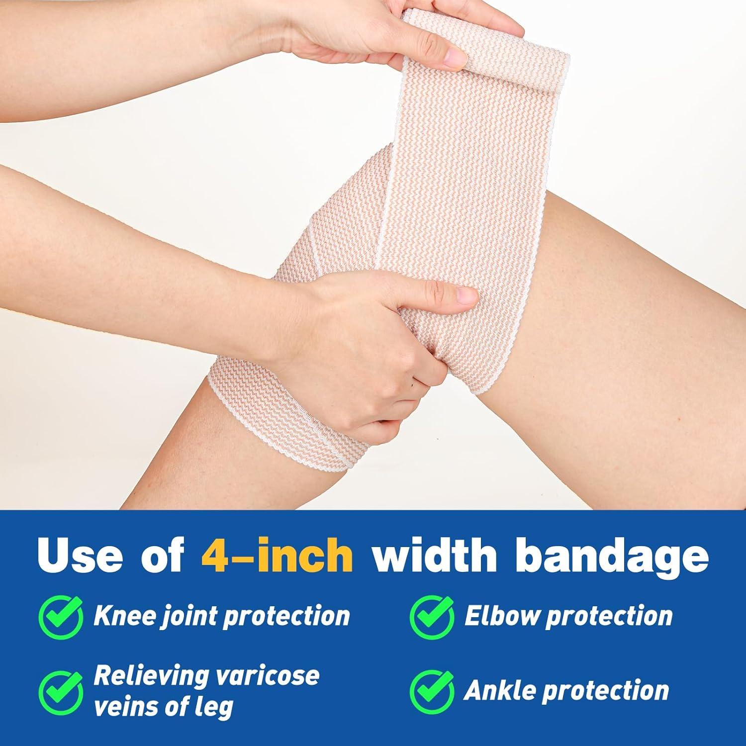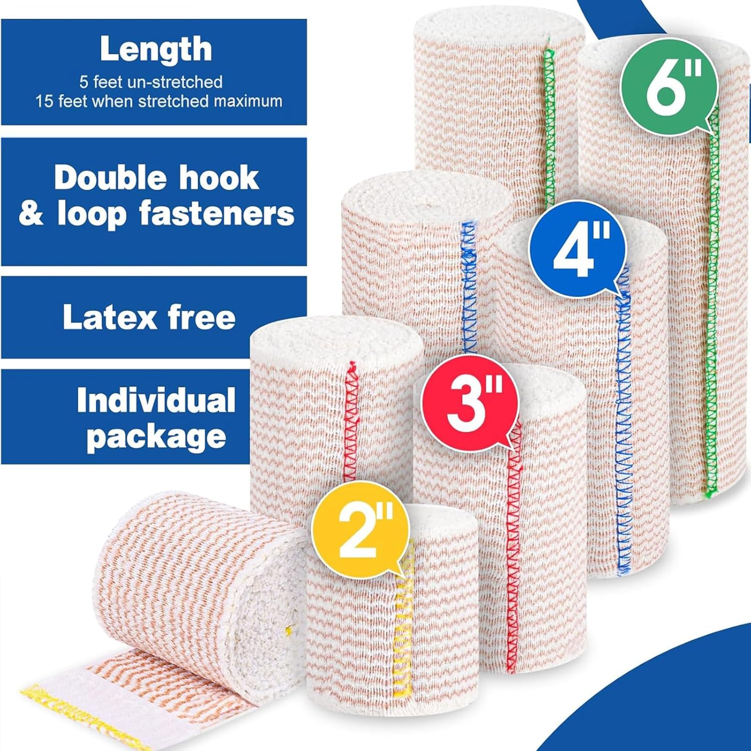 AZEN Premium 8 Pack Elastic Bandage Wrap (2×2″, 2×3″, 2×4″, 2×6″), Compression Wrap Bandage for Legs, Ankle, Knee, Tummy, Body, Latex-Free, Lymphedema Wraps for Legs