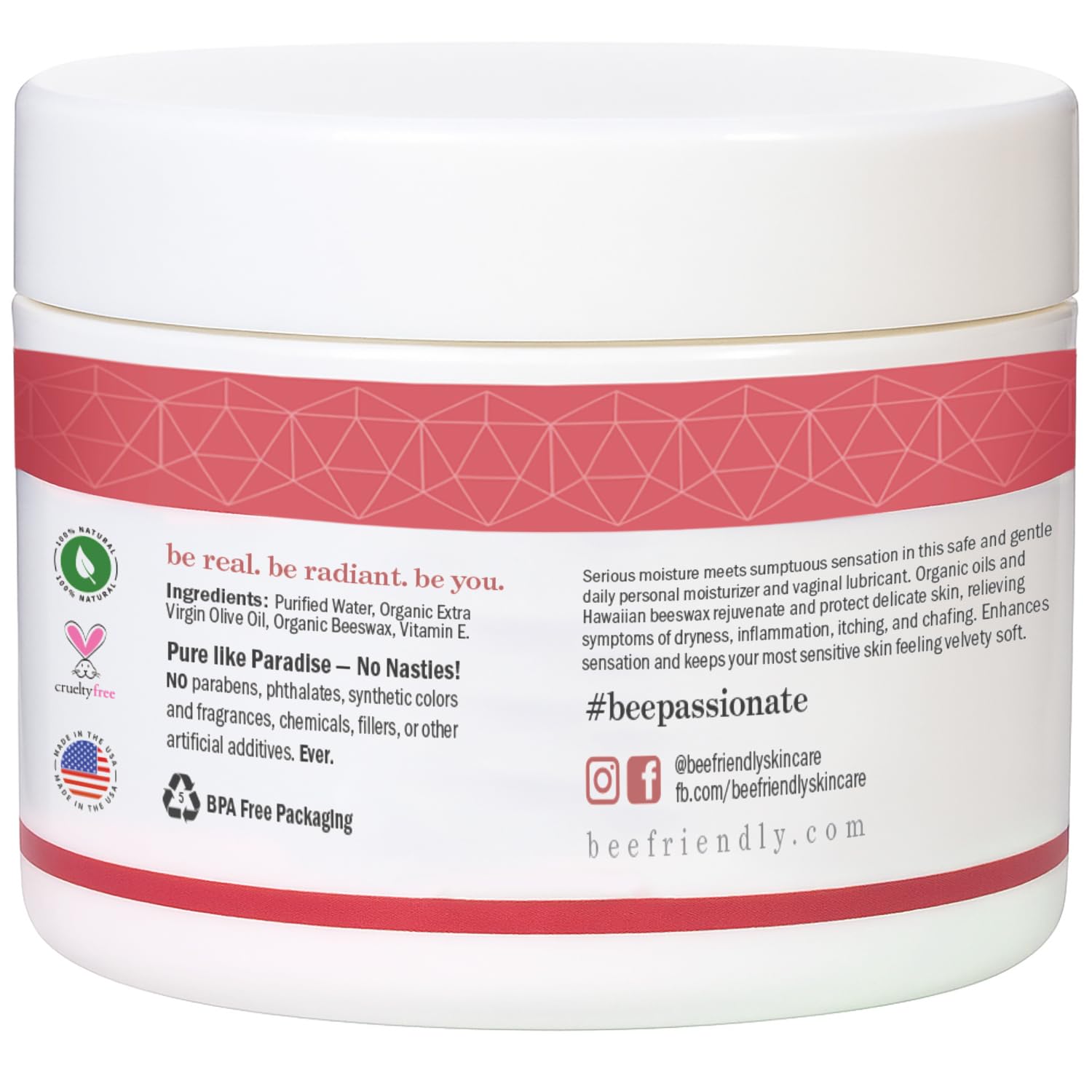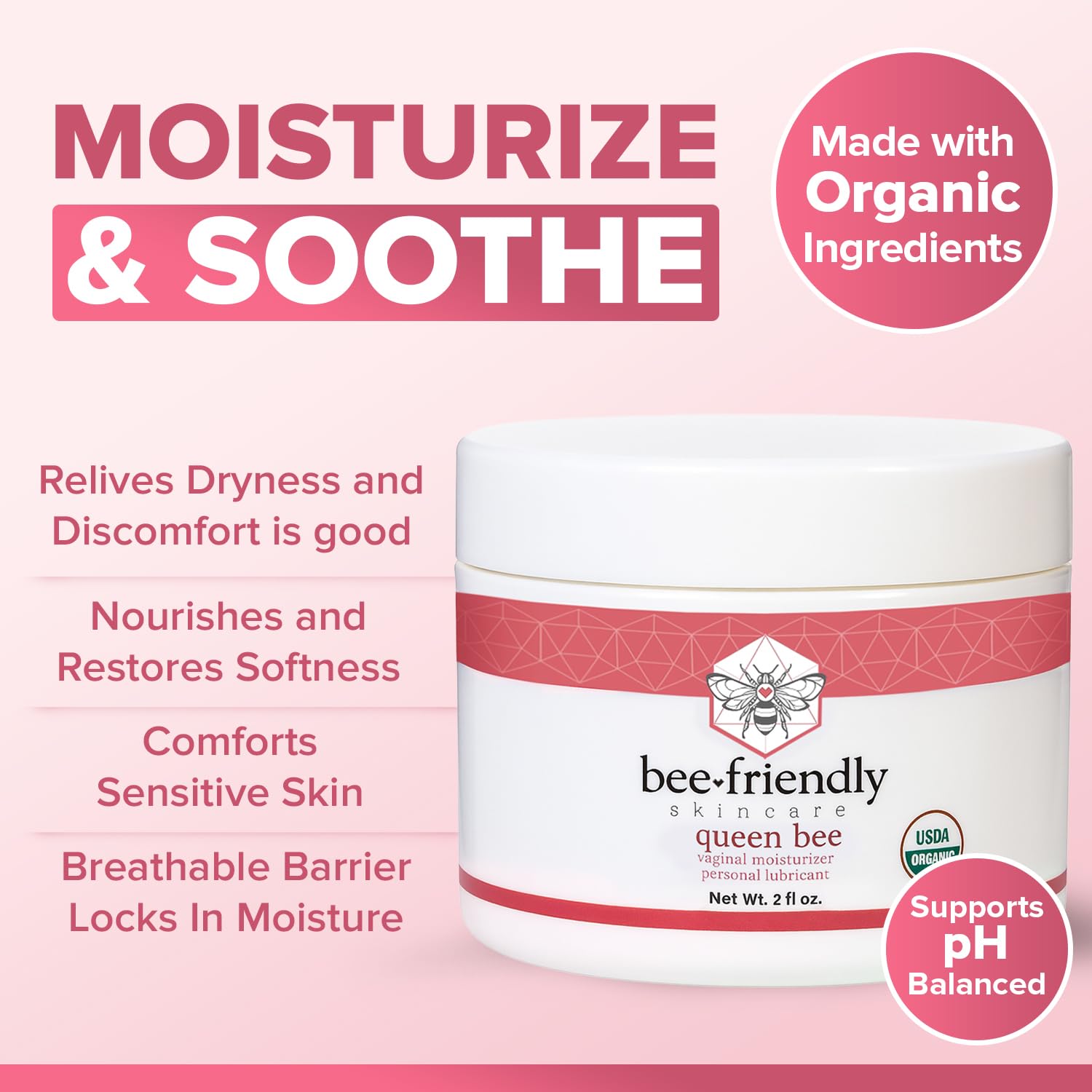 BeeFriendly Organic Vaginal Moisturizer, USDA Certified, Natural Vulva Cream For Dryness, Itching, Irritation, Redness, Chafing Of Vagina Due To Menopause & Thinning 2 oz