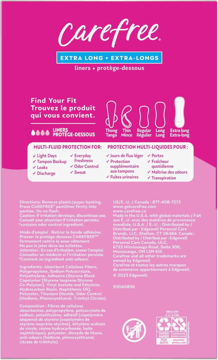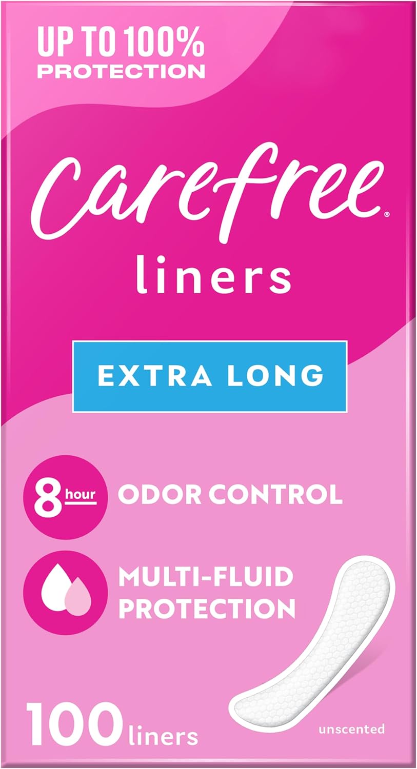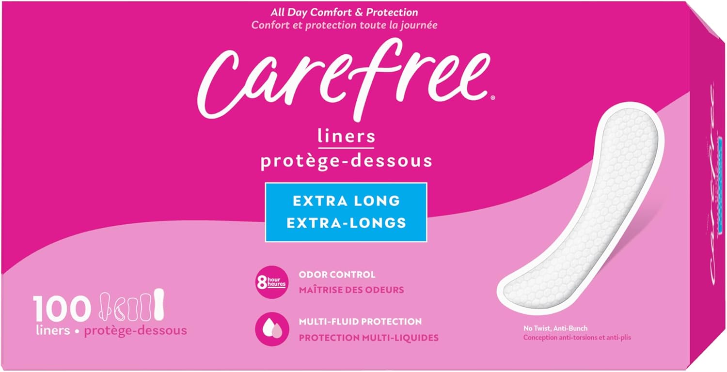 Carefree Panty Liners, Extra Long Liners, Unwrapped, Unscented, 100ct