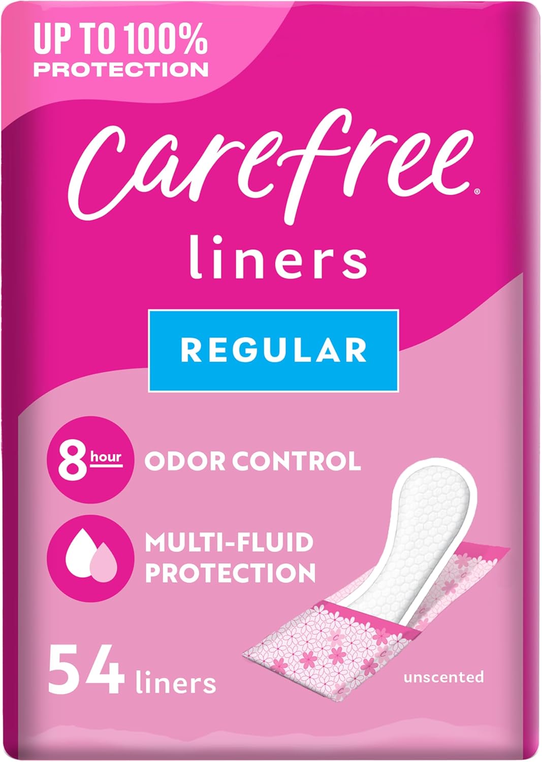 Carefree Panty Liners, Regular Liners, Wrapped, Unscented, 54ct