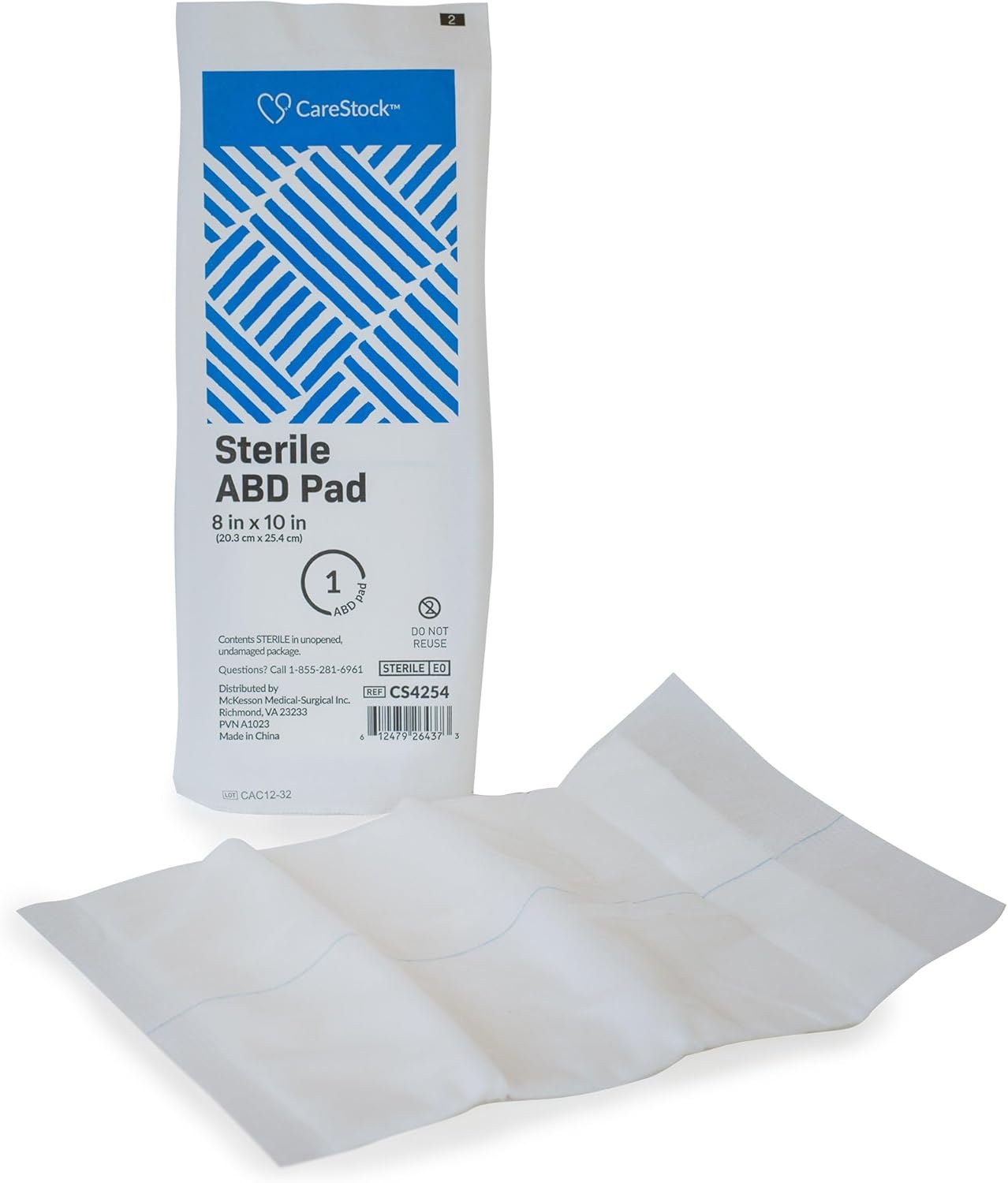 CareStock Abdominal Pads 8×10 in [48-Pack] Sterile ABD Pads, Extra Absorbent, Individually Wrapped, Wound Care First Aid, 24 Count, Pack of 2