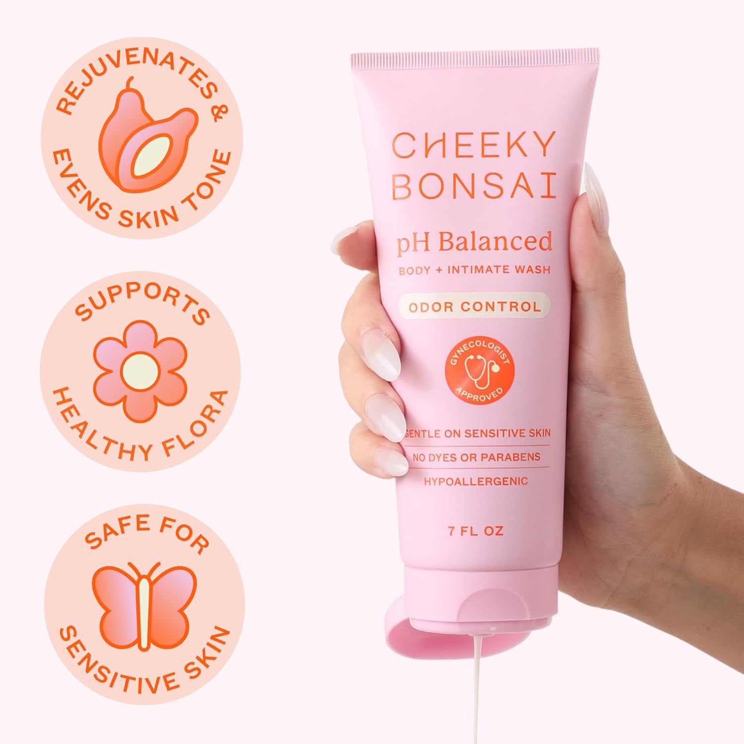 Cheeky Bonsai pH Balanced Feminine Wash for Women – Removes Odor – Gentle on Sensitive Skin – No Dyes or Parabens – Hypoallergenic – Gynecologist Approved (7 Ounces)
