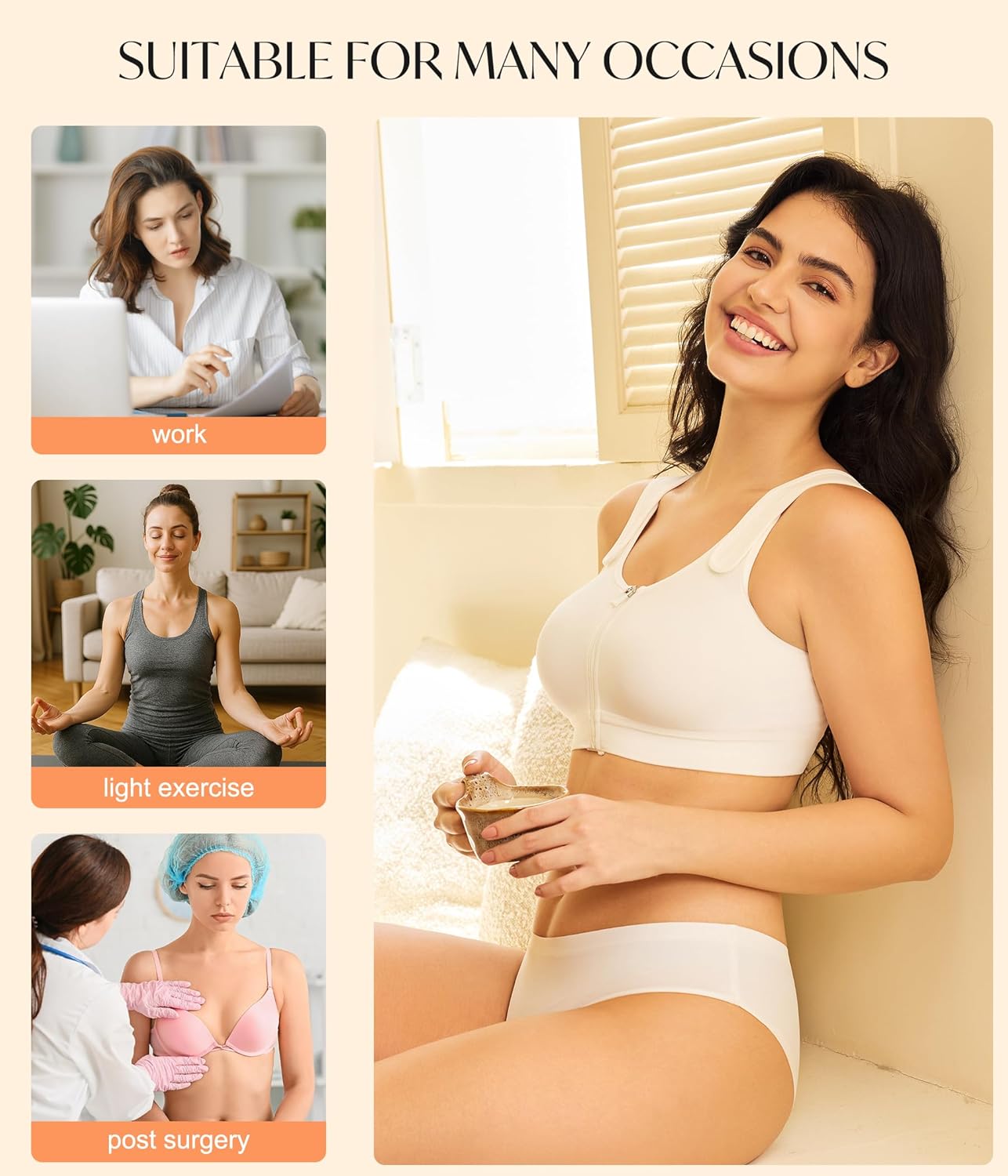 CYDREAM Zip Front Closure Wireless Bras for Women Full Coverage Post Surgery Compression Back Smoothing Comfort Adjustable