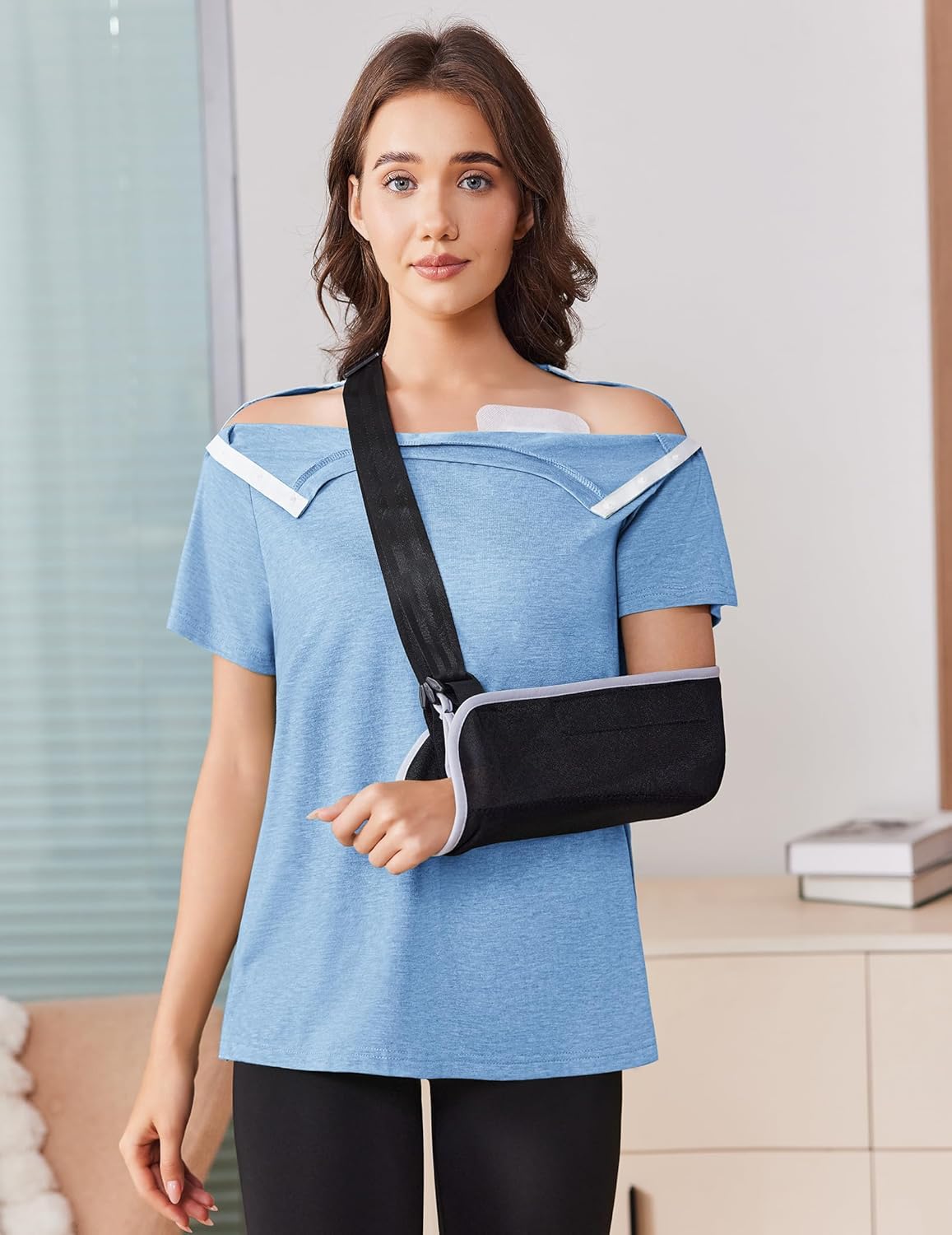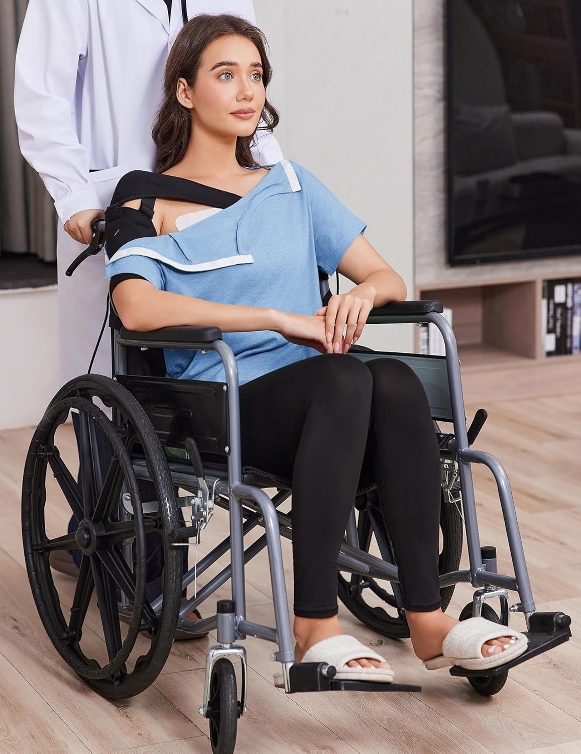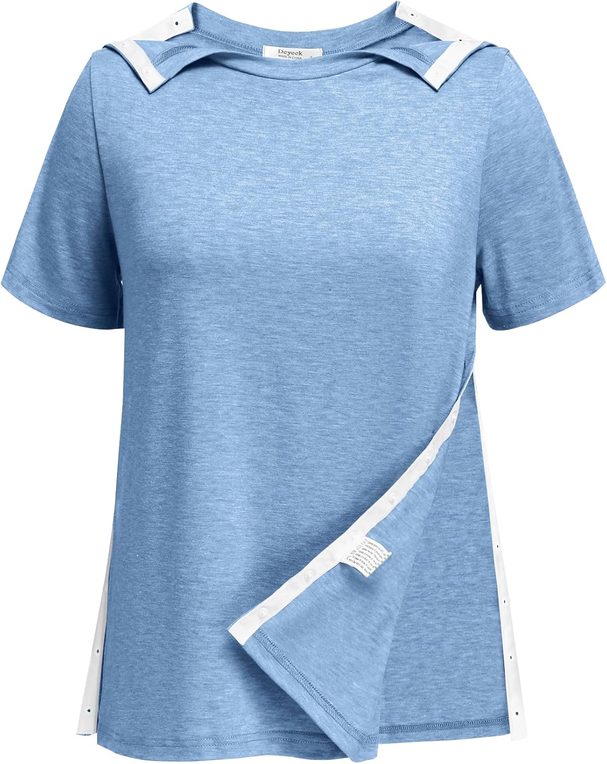Deyeek Post Shoulder Surgery Shirts for Women Tear Away Side Snap Chemo Port Shirts Short Sleeve Adaptive Clothing