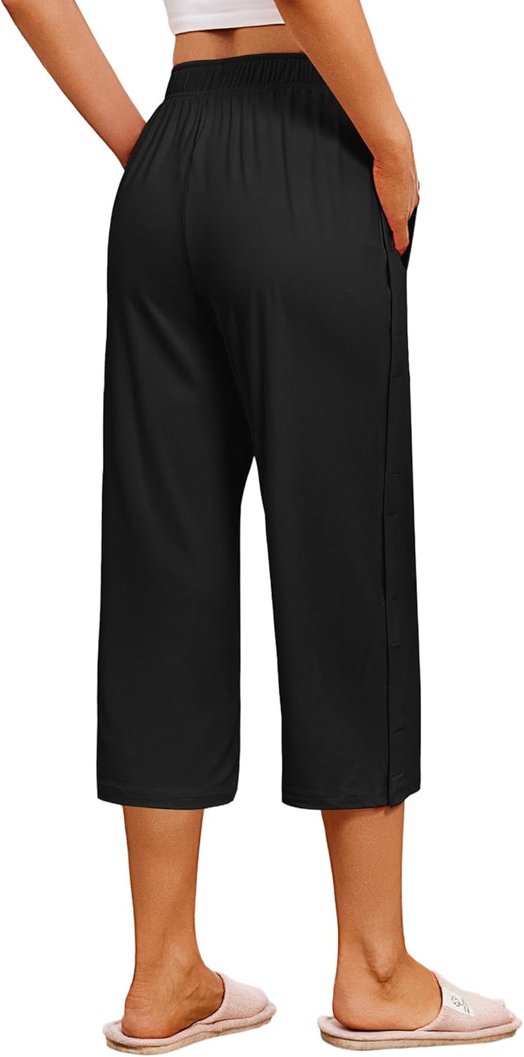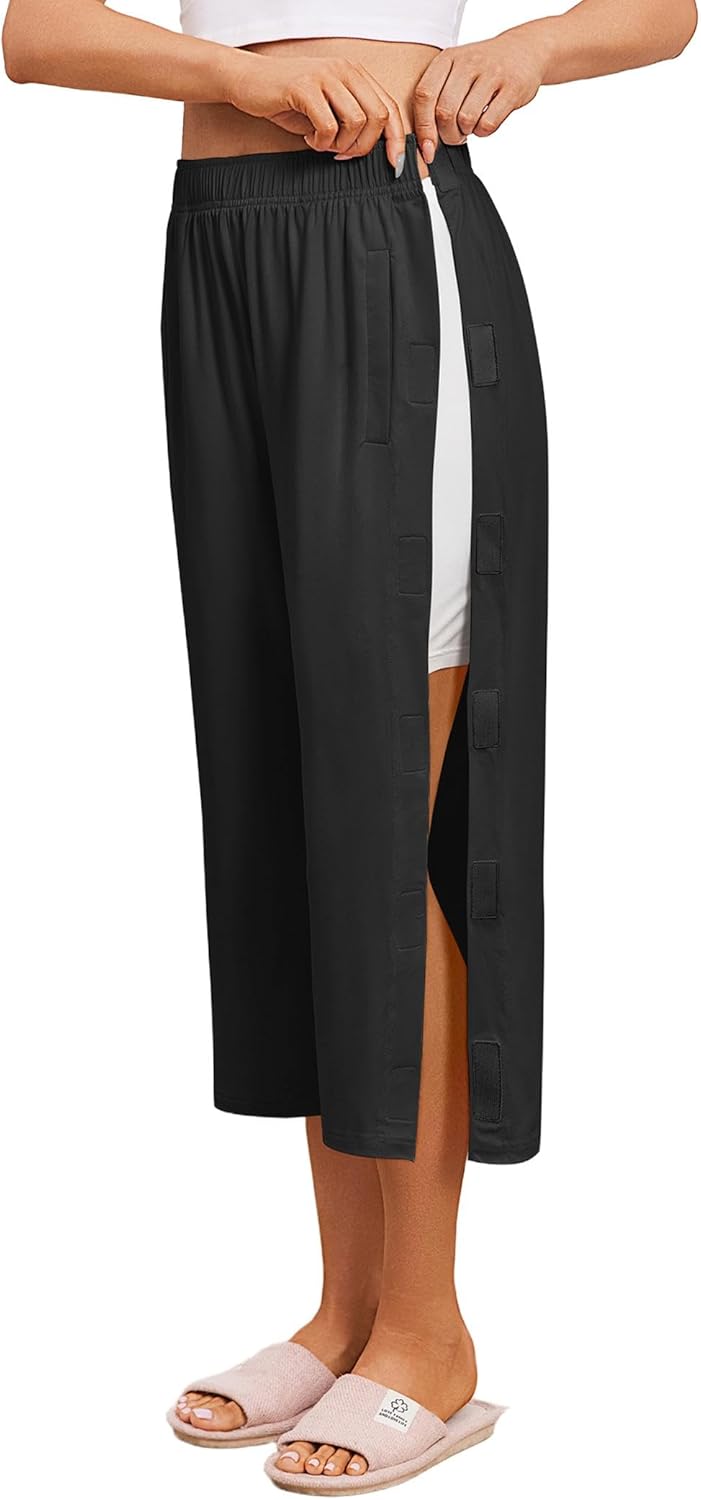 Deyeek Women’s Tear Away Breakaway Capri Pants Post Surgery Recovery Hip Knee Ankle Replacement Adaptive Magic Tape Wide Leg