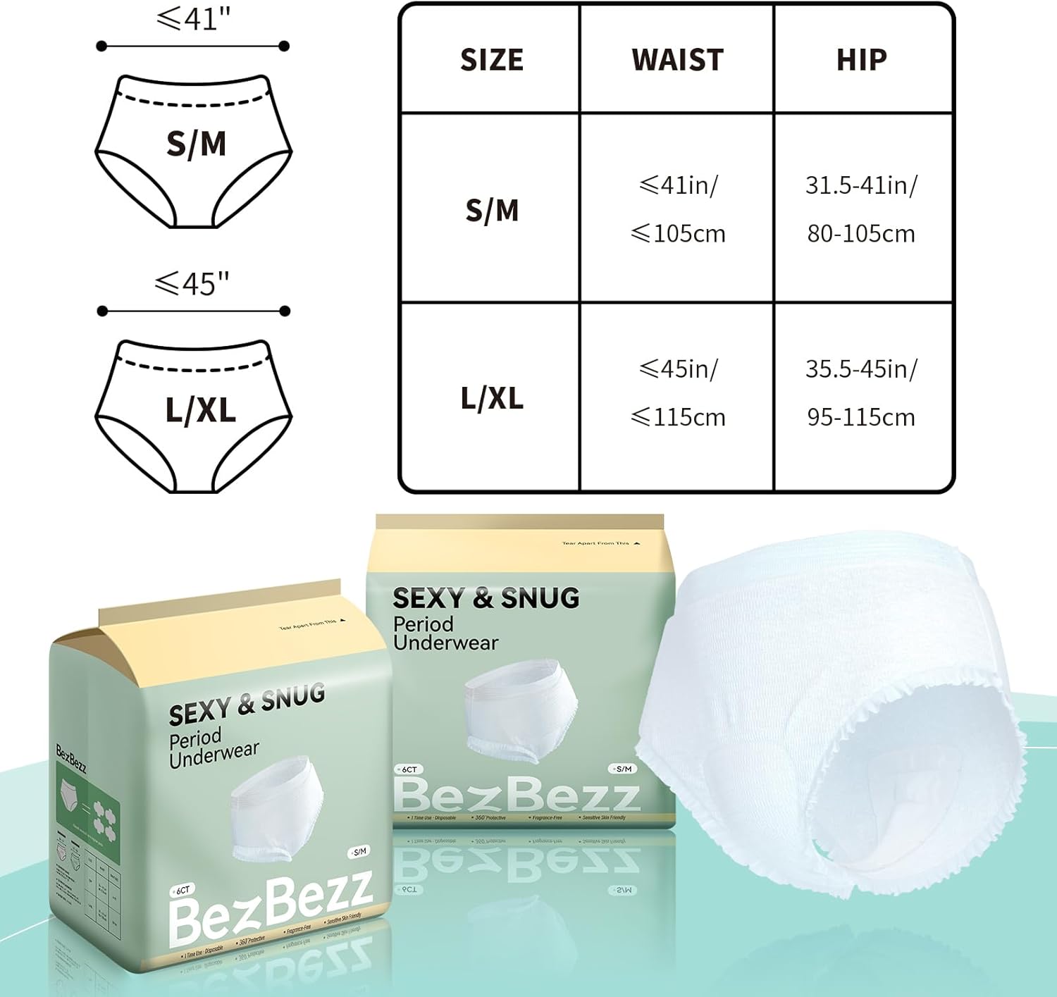 Disposable Period Underwear for Women S/M, 360° Leak Proof Period Panties for Heavy Flow, Overnight Postpartum and Incontinence, Odor Control, Breathable, Comfortable & Secure, 6 Count