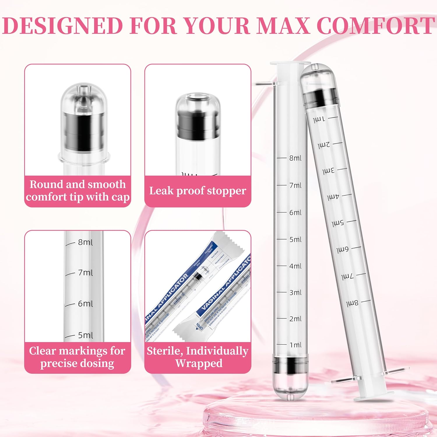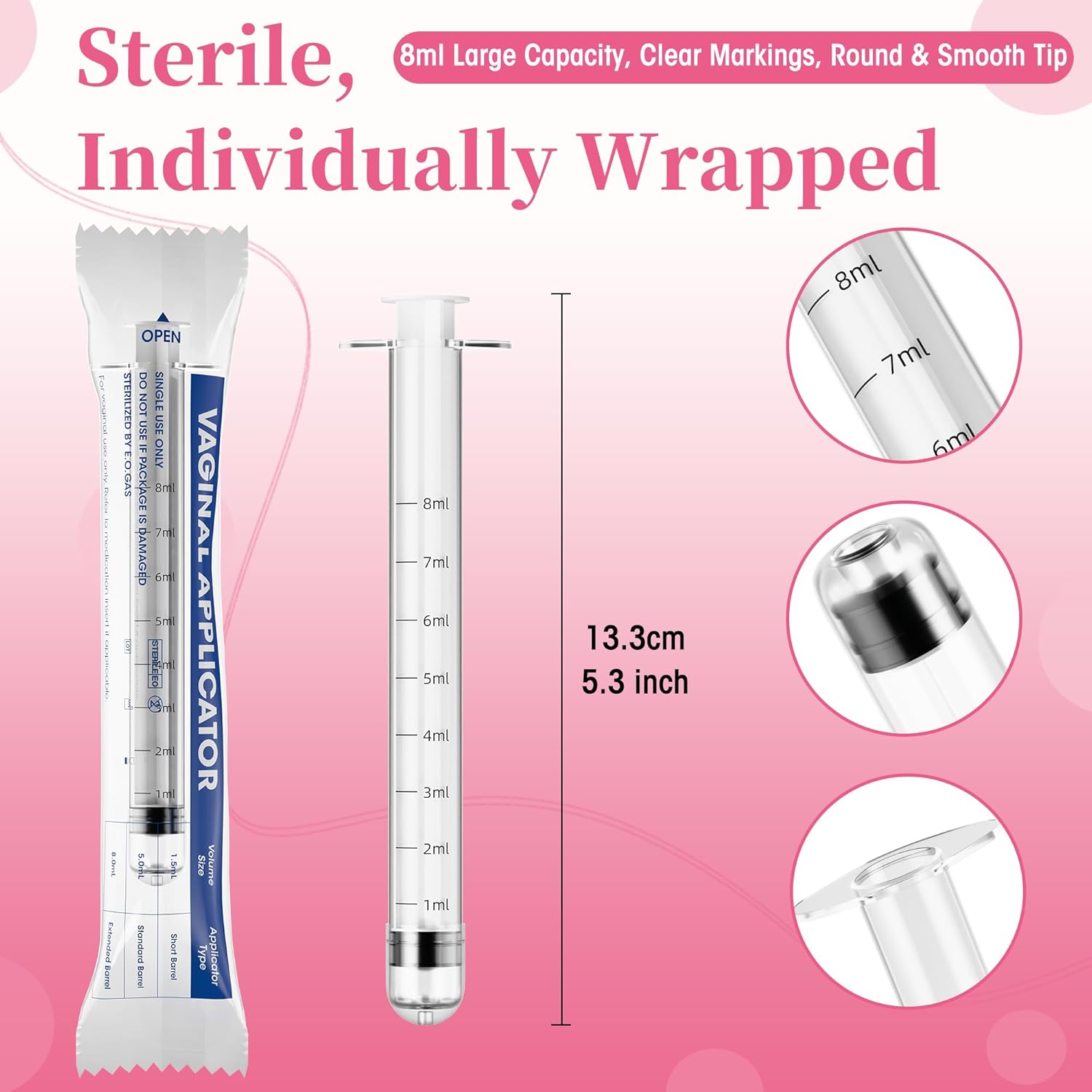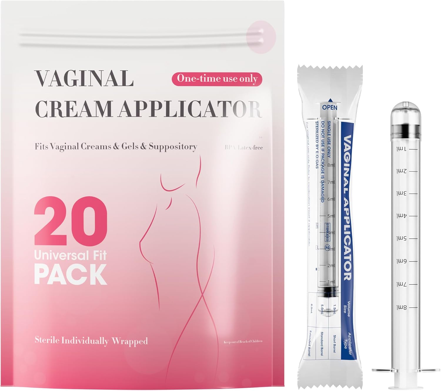 Disposable Vaginal Cream Applicators – 8ml Lube Injector Syringes with Smooth Tip, Dosage Markings, Fits Most Lubricants Creams Gels, Sterilized Individually Wrapped, Pack of 20