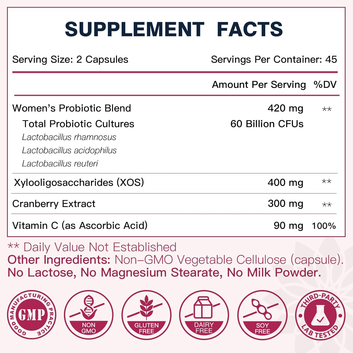 DRFOSTER Vaginal Probiotics for Women pH Balance with Prebiotics & Cranberry – Womens Probiotic Feminine Care Promote Healthy Vaginal Odor & Vaginal Flora, Support Gut Health & UTI – 90 Vegan Capsules