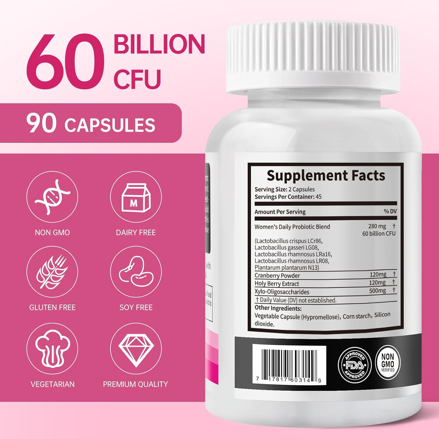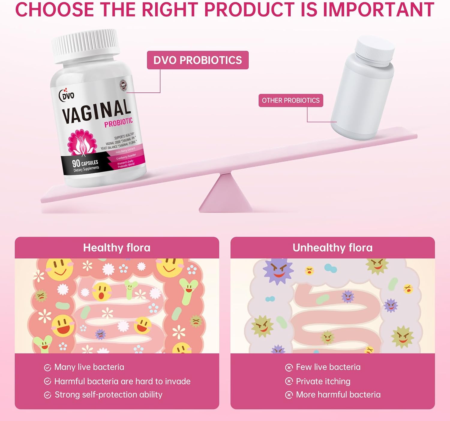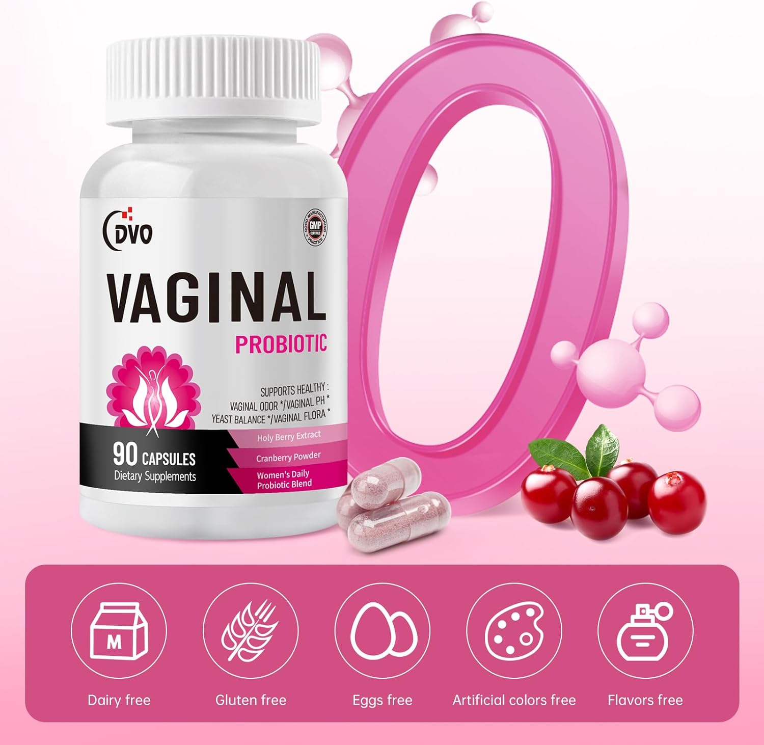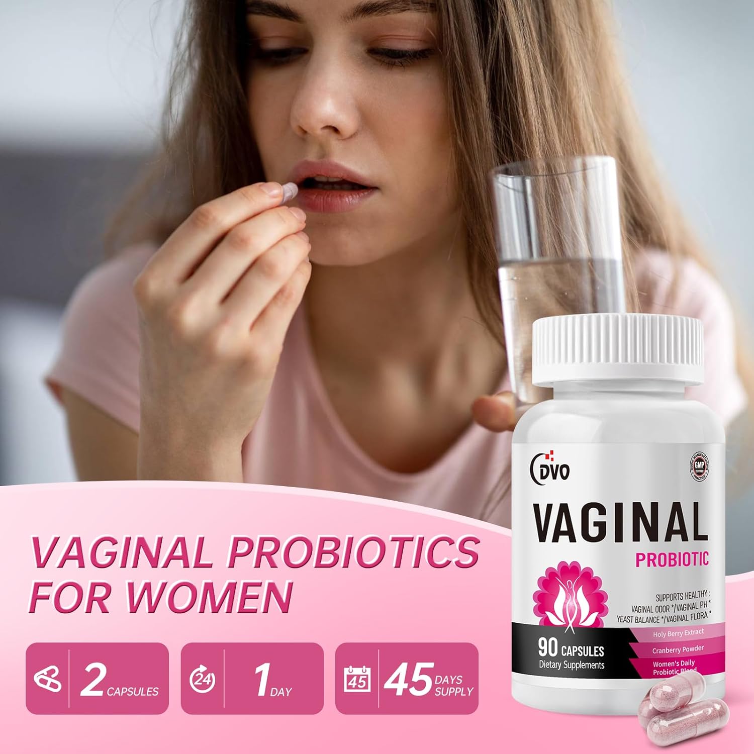 DVO Vaginal Probiotics for Women,pH Balance,60 Billion CFU with Prebiotics & Lactobacillus,Healthy Odor, Yeast Balance & Flora Support for Immune Health 90 Count