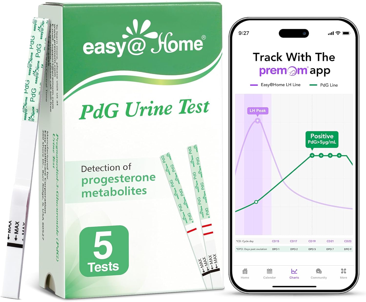 Easy@Home PdG Test Strips: 5 Pack – Track Ovulation Insights with Progesterone Urine Tests – at Home Fertility Test for Women with Premom Ovulation App – PdG (Pregnanediol Glucuronide) Tests