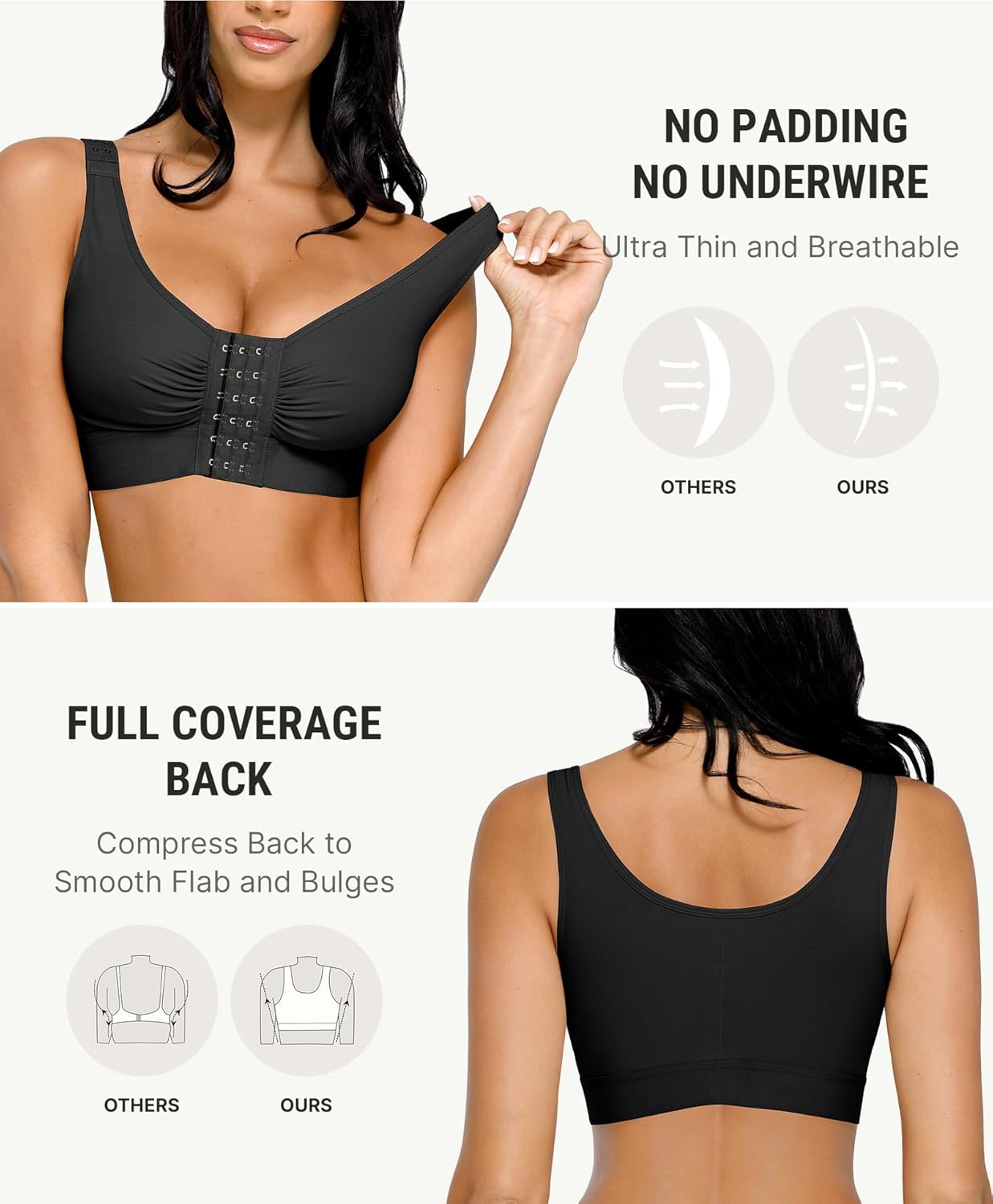 FeelinGirl Post Surgery Compression Bra for Women’s Front Closure Bra with Adjustable Straps Wirefree