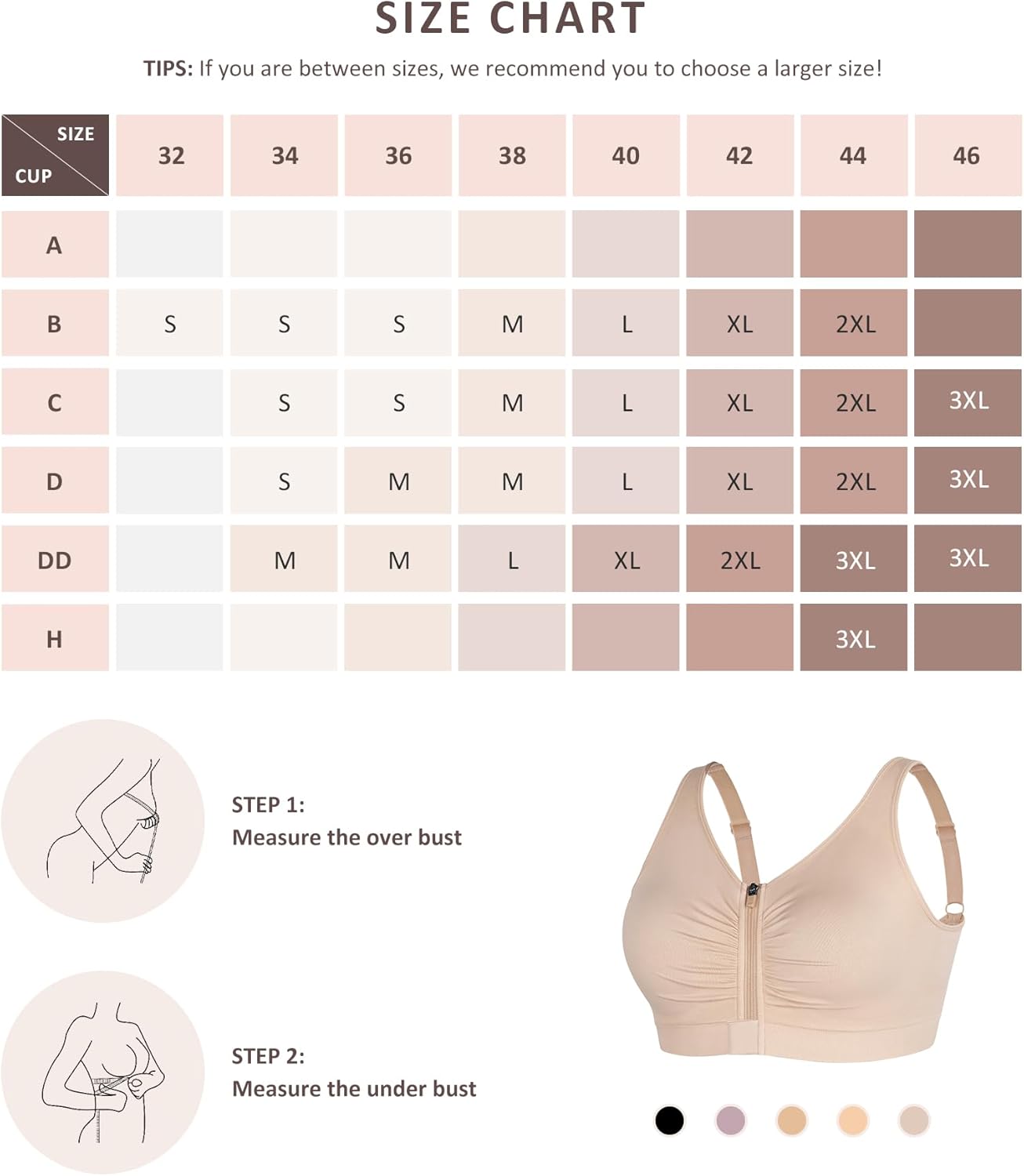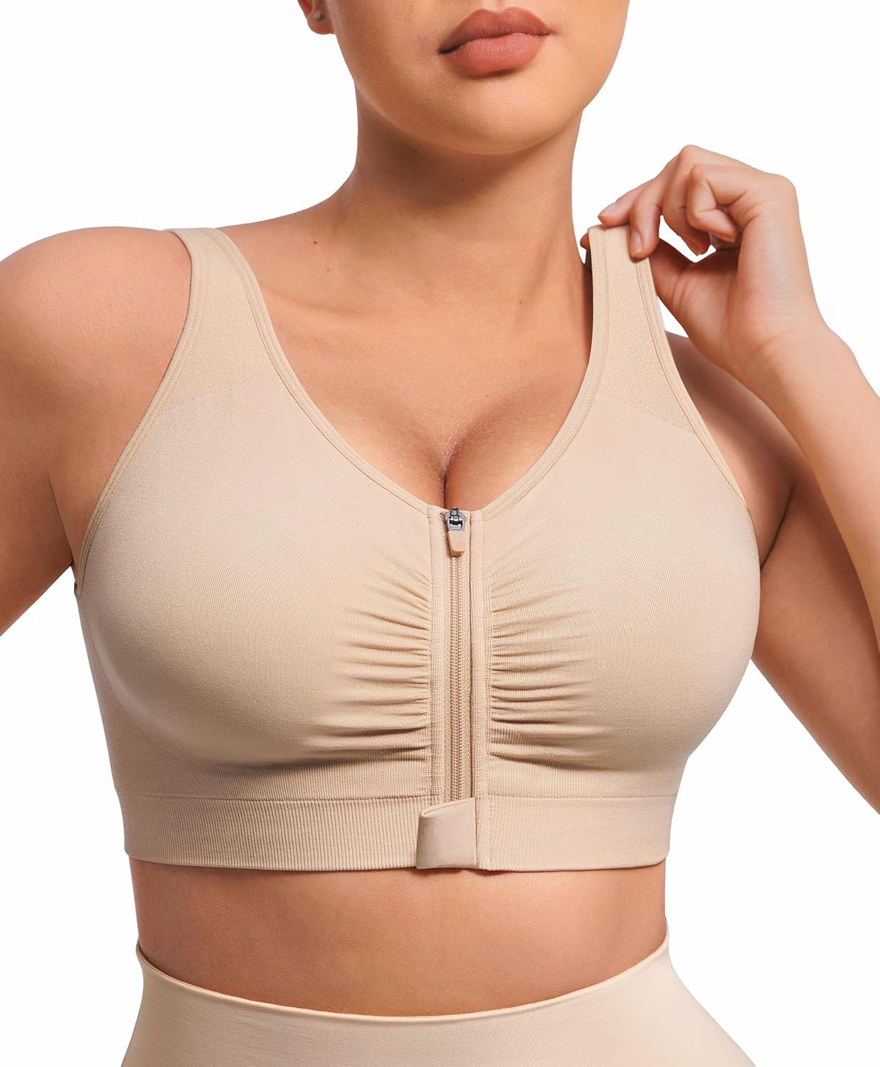 FeelinGirl Zip Front Closure Bras for Women No Underwire Compression Post Surgery Bra with Wide Adjustable Straps