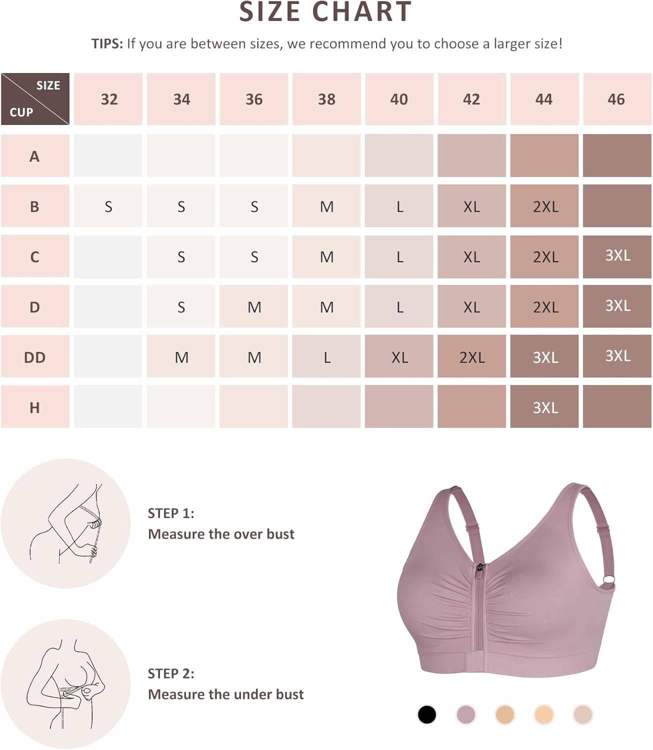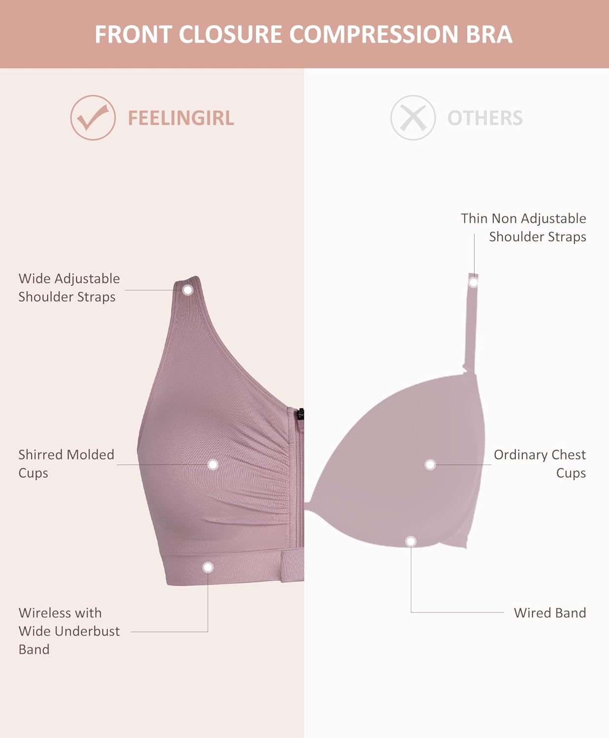 FeelinGirl Zip Front Closure Bras for Women No Underwire Compression Post Surgery Bra with Wide Adjustable Straps