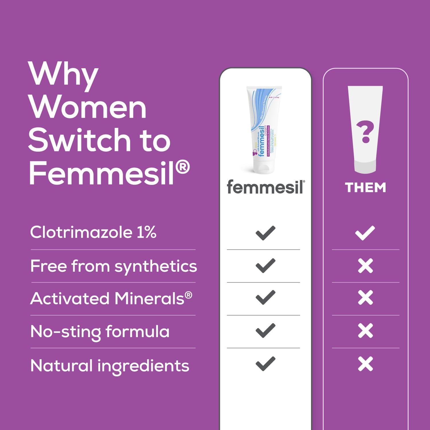 Femmesil Yeast Infection Treatment for Women, with Clotrimazole, Antifungal Vaginal Cream for Soothing Relief of Vaginal Itch & Irritation, Burning & Discomfort, 1.7oz Tube