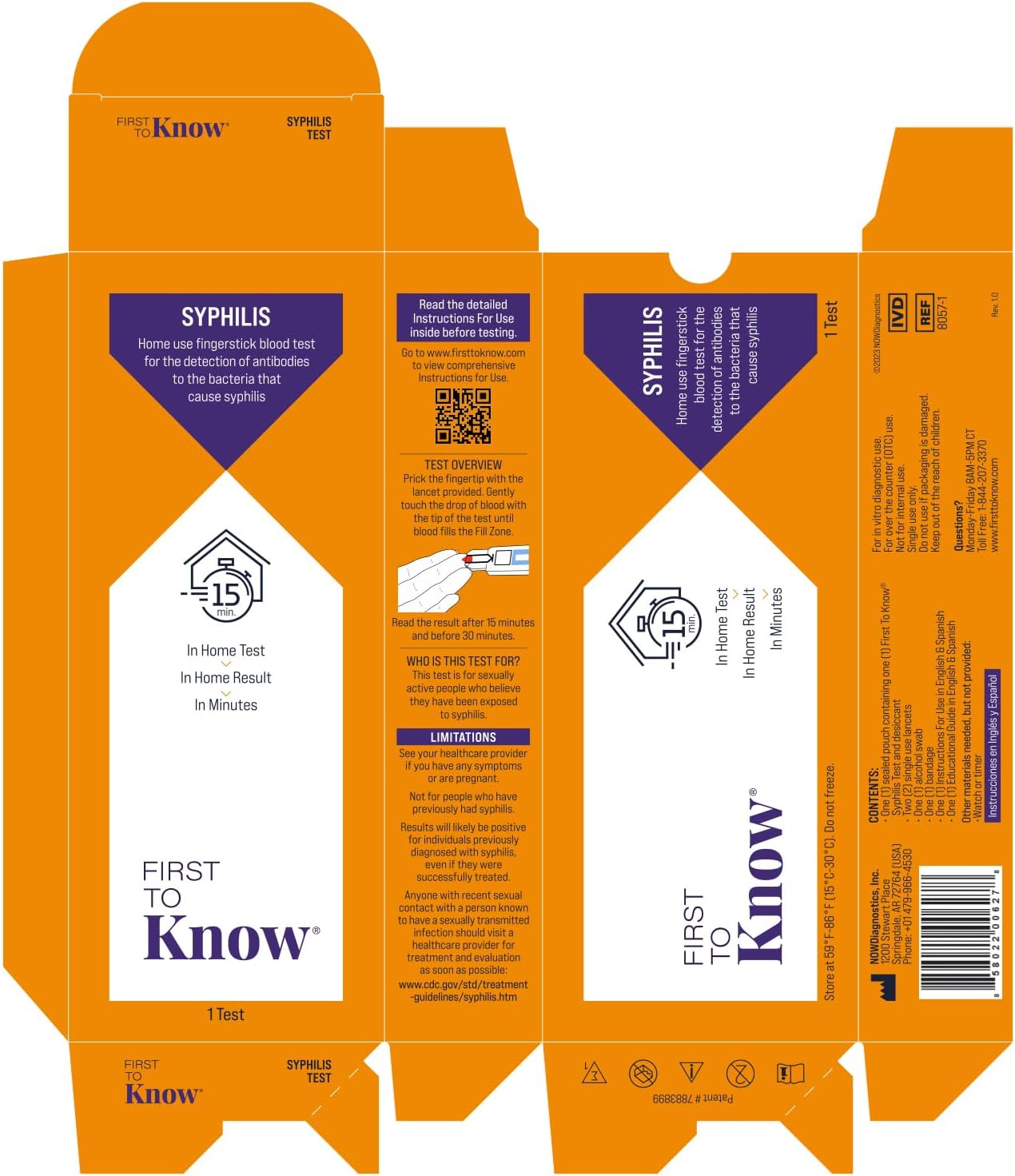 First To Know® Syphilis Test, in Home Fingerstick Blood Test with in Home Result in 15 Minutes, Discrete, Lab Accurate Testing (1 Test)