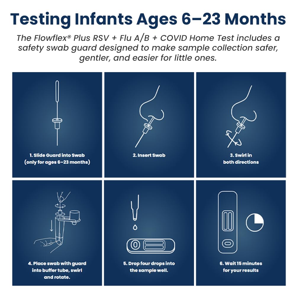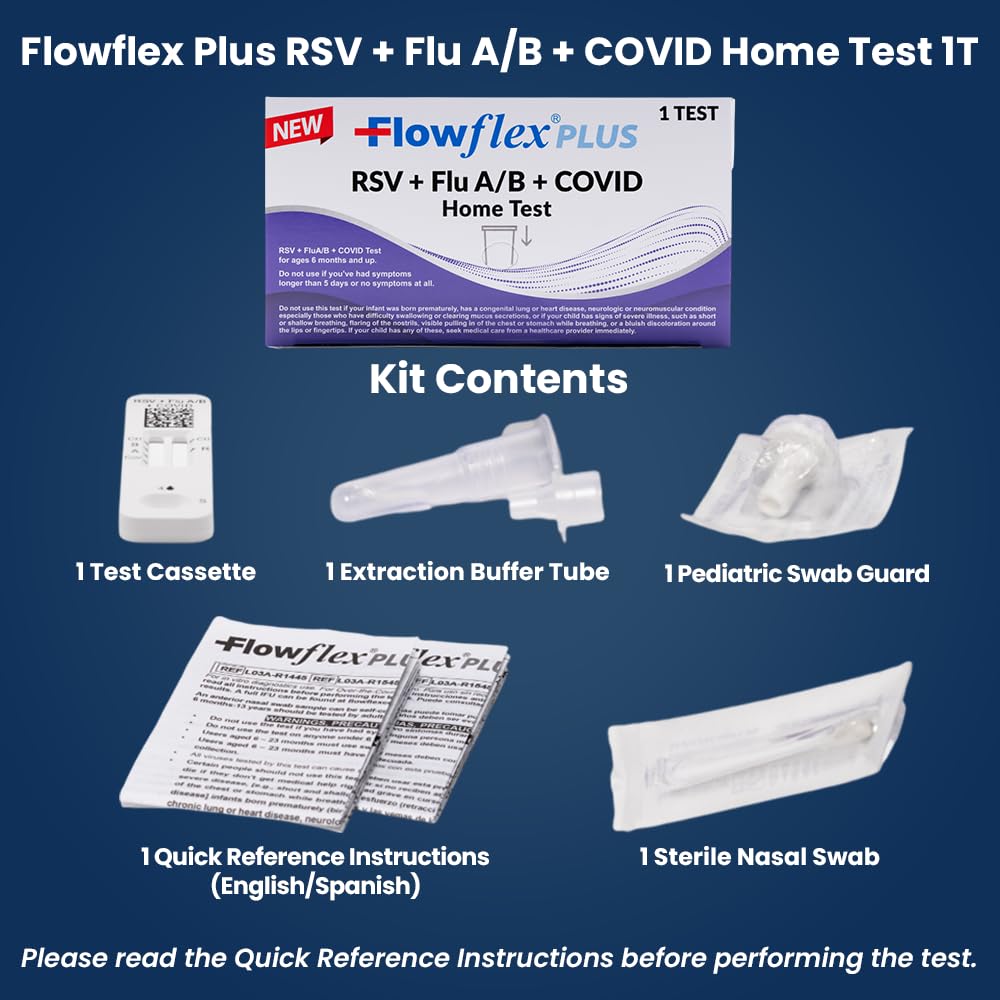 Flowflex Plus RSV + Flu A/B + COVID Home Test, 4-in-1 Home Test Kit, Rapid Results in 15 Minutes, OTC At-Home Antigen Test for Adults & Children (2 Tests)