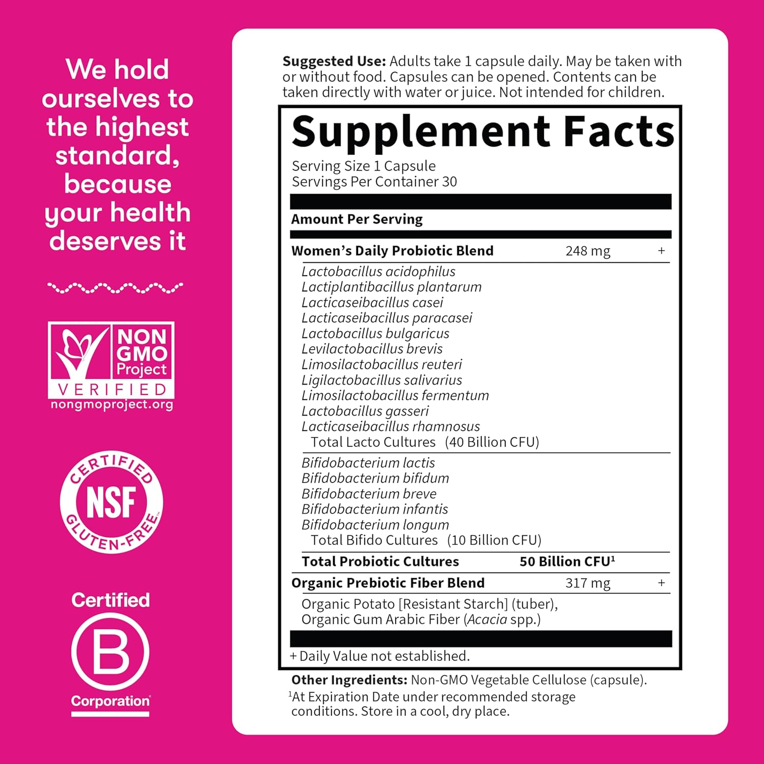Garden of Life Once Daily Dr. Formulated Probiotics for Women 50 Billion CFU 16 Probiotic Strains with Organic Prebiotics for Digestive, Vaginal & Immune Health, Dairy Free, Shelf Stable 30 Capsules