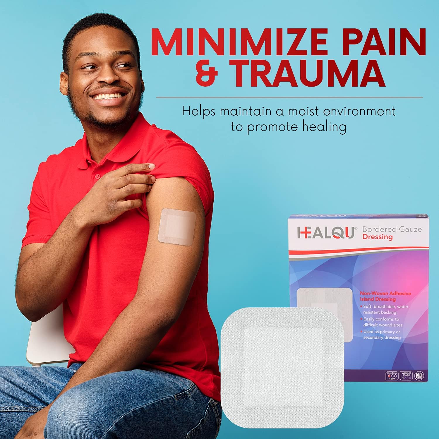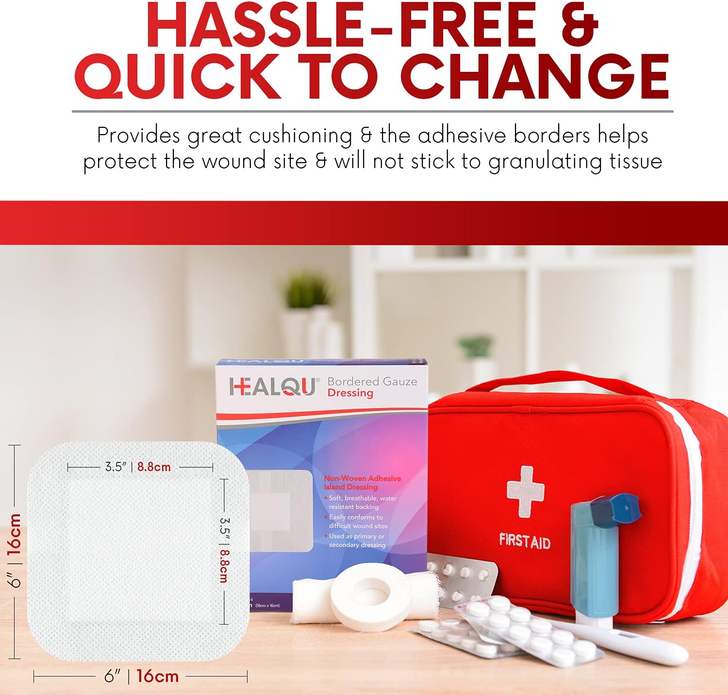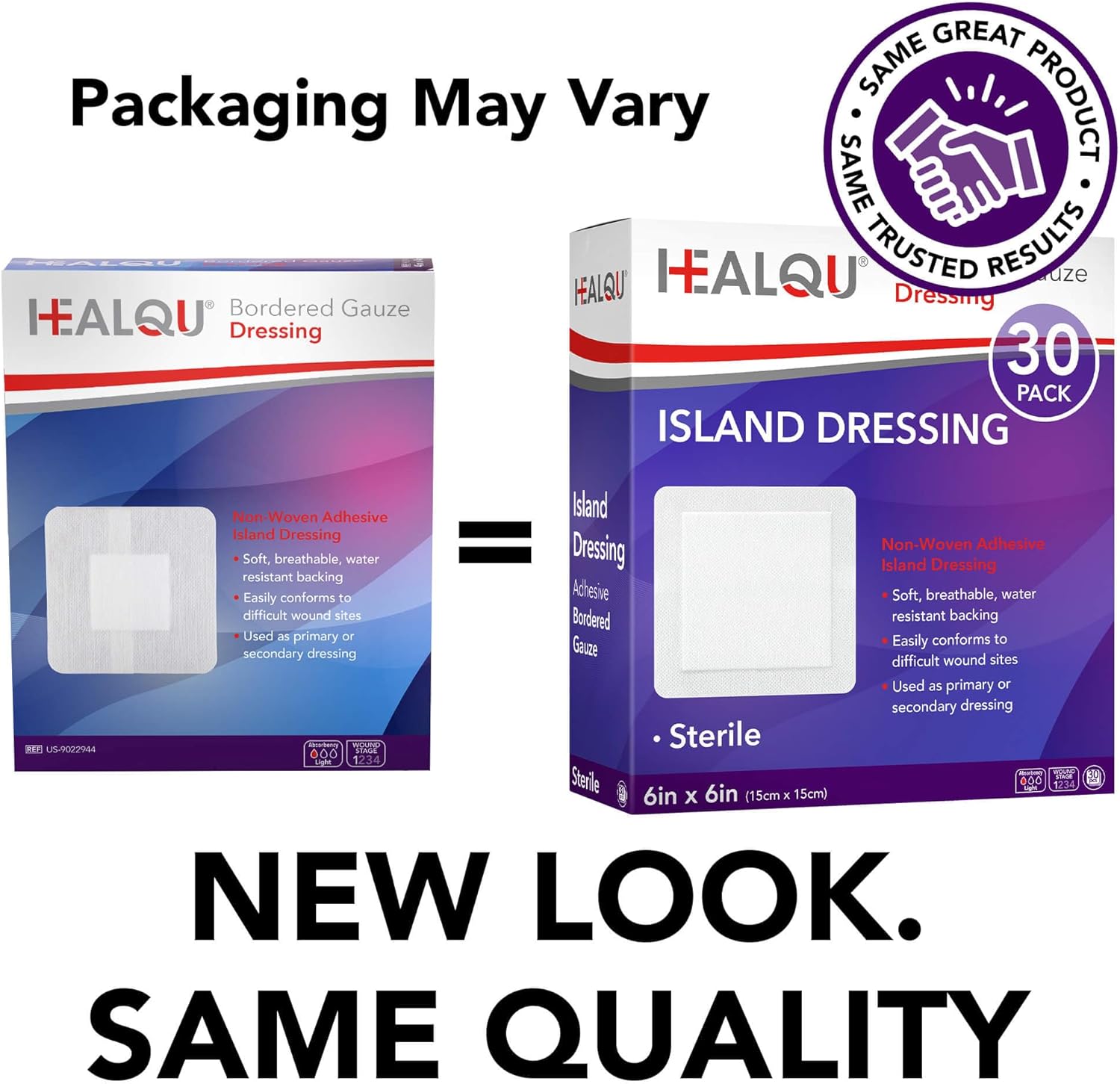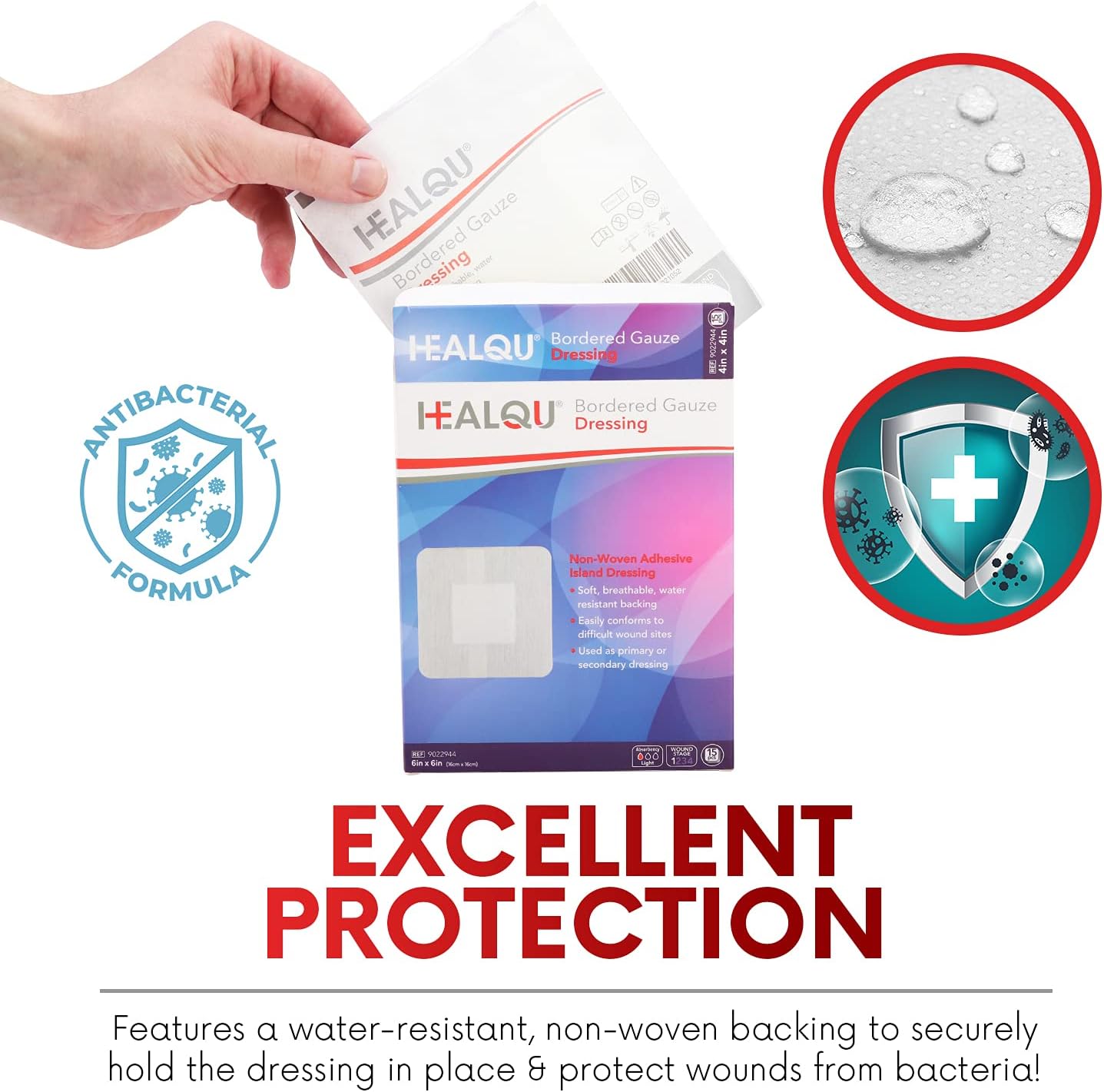 HEALQU Island Dressing – 6″x6″, 30 Count – Bordered Gauze Sterile Individually Wrapped Gauze Pads, Water-Resistant, Non-Woven Backing – Soft and Breathable Wound Dressing for First Aid and Medical
