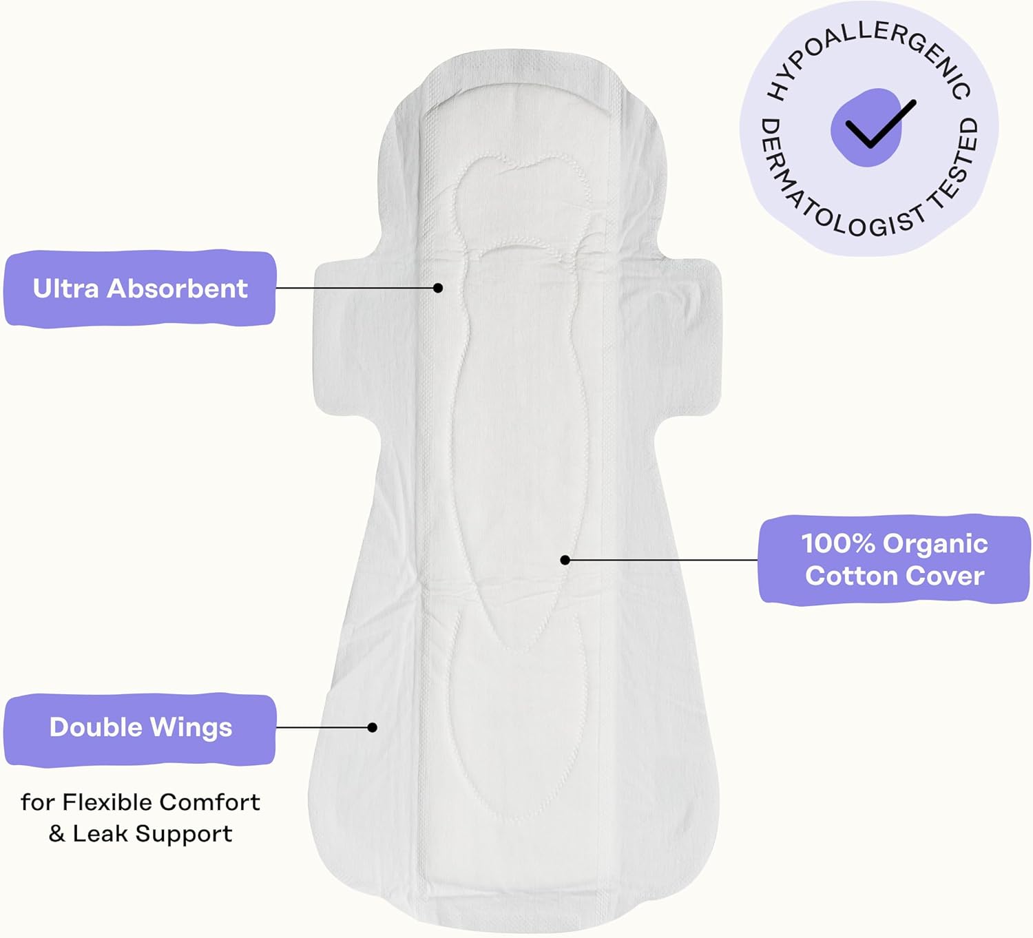 Honey Pot Calming Overnight Sanitary Pads for Women – 100% Organic Cotton Top Sheet – Feminine Care – Non Cooling – Calming Herbs of Lavender, Ashwagandha, & Lemon Balm – 12ct