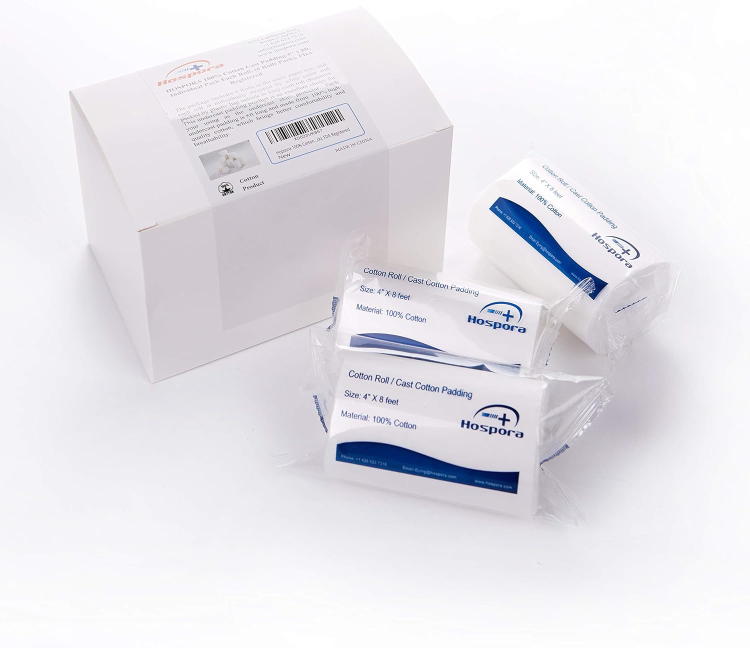 HOSPORA Medical Cotton Cast Padding Roll, 4 Inch x 8 feet, Individual Pack(Pack of 6)