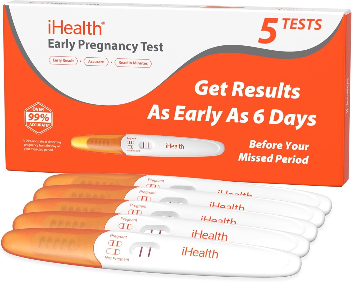 iHealth Pregnancy Test 5-Pack Value Kit – Ultra Sensitive Early Detection(10mIU/mL) – Over 99% Accurate Early Pregnancy Test – Multi-Pack Pruebas De Embarazo for Reliable Home Tracking