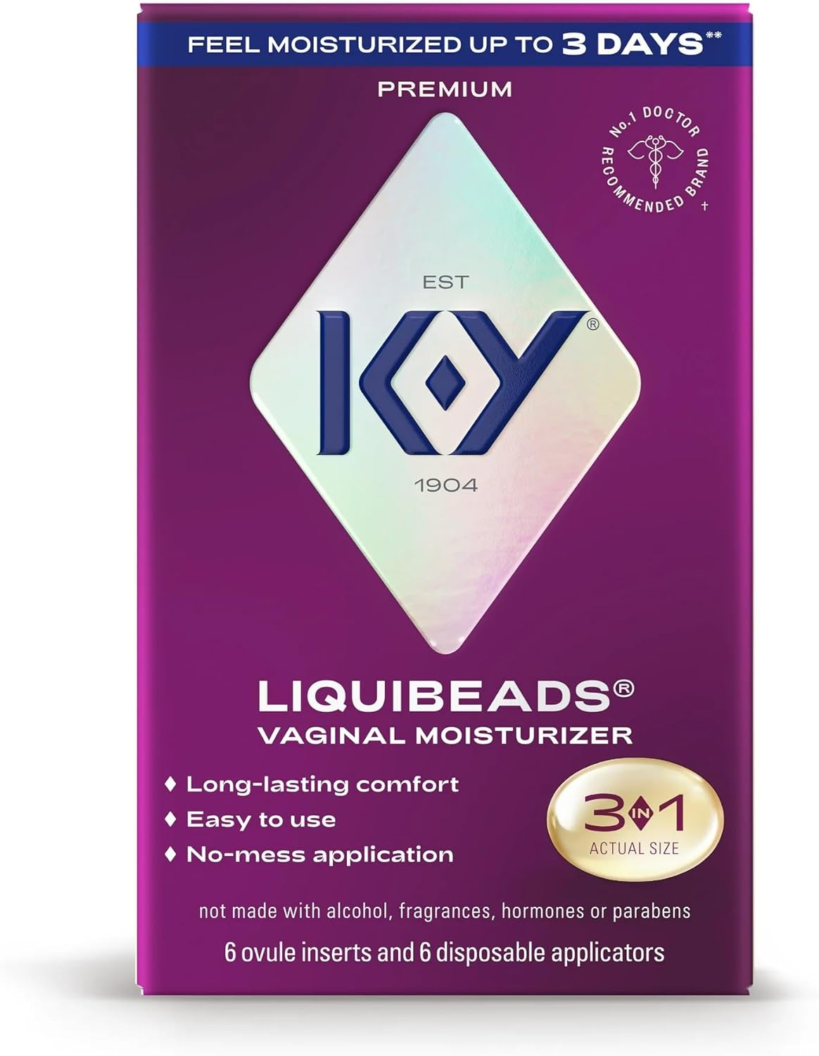 K-Y Liquibeads Vaginal Moisturizer for Women, Silicone Lube Vaginal Suppository, Vaginal Lubricant Helps Reduce Pain Due to Vaginal Dryness, 6 Vaginal Suppositories & 6 Vaginal Applicators