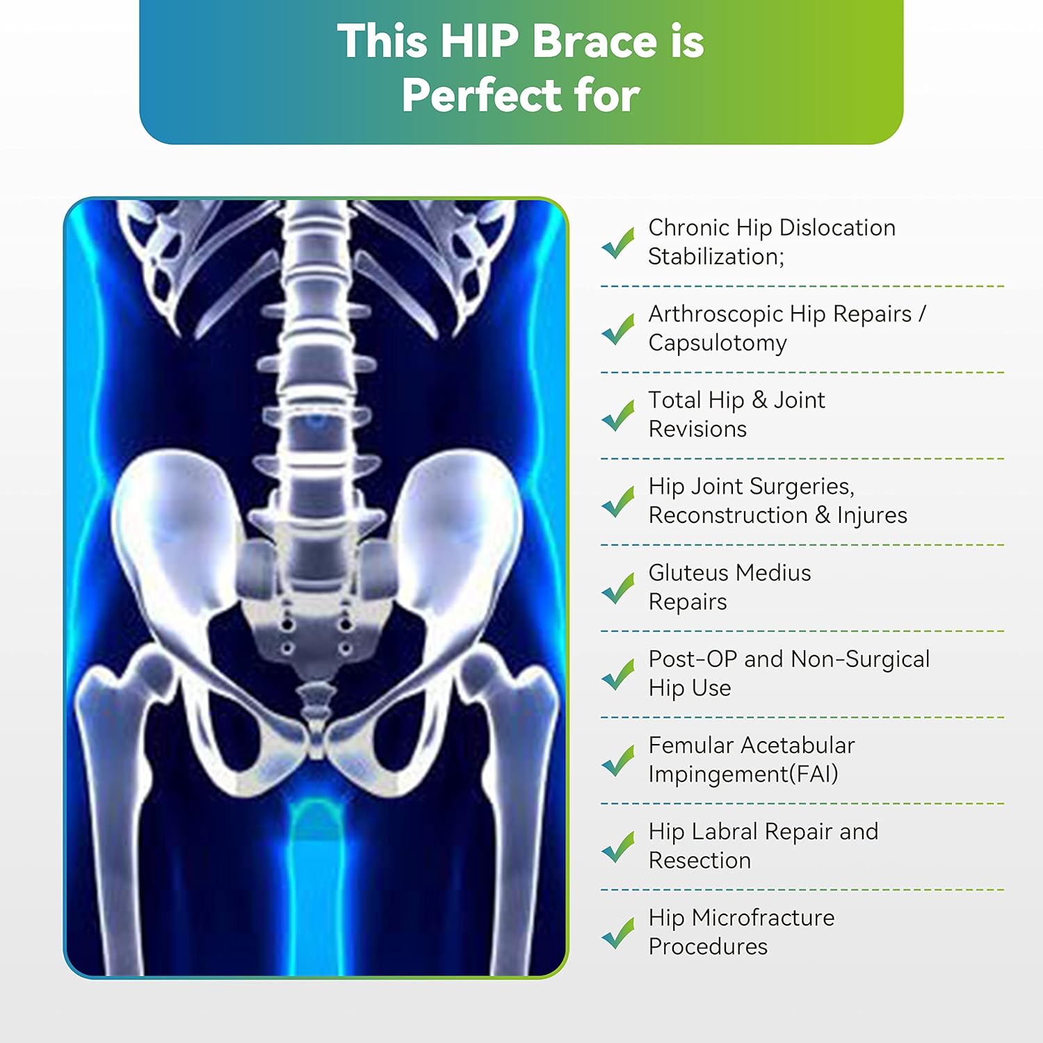 Komzer Professional Hip Abduction Brace, Adjustable ROM Stabilizer for Post-Op Recovery, Hip Replacement, Arthritis & Dislocation Support, Universal Fit for Men & Women