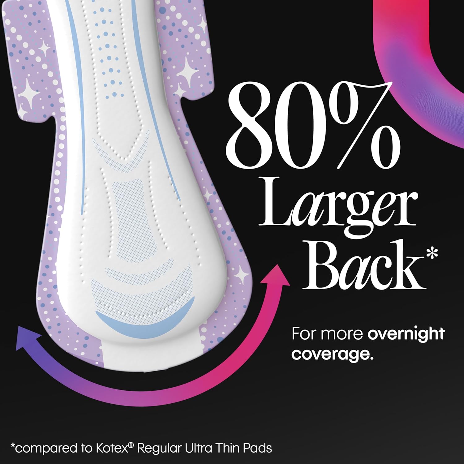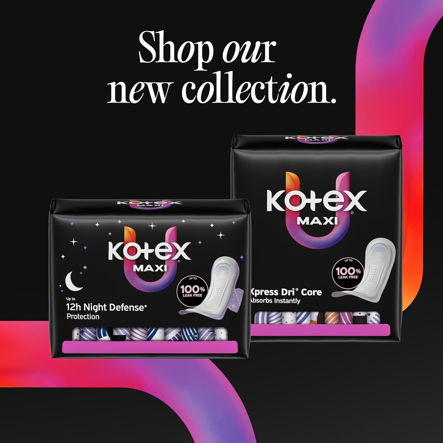 Kotex Overnight Maxi Pads with Wings, Extra Heavy Absorbency, 28 Count (Packaging May Vary)