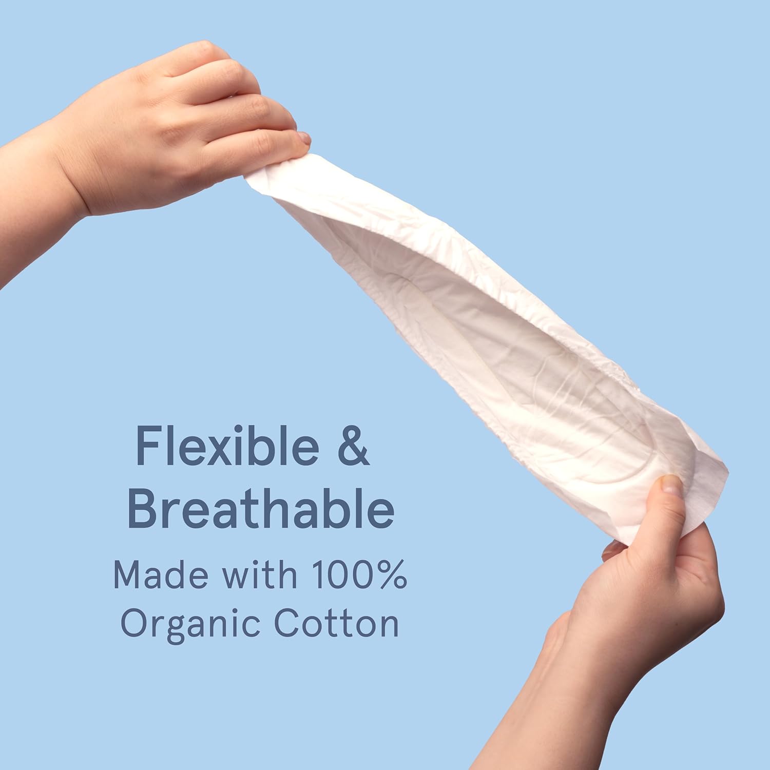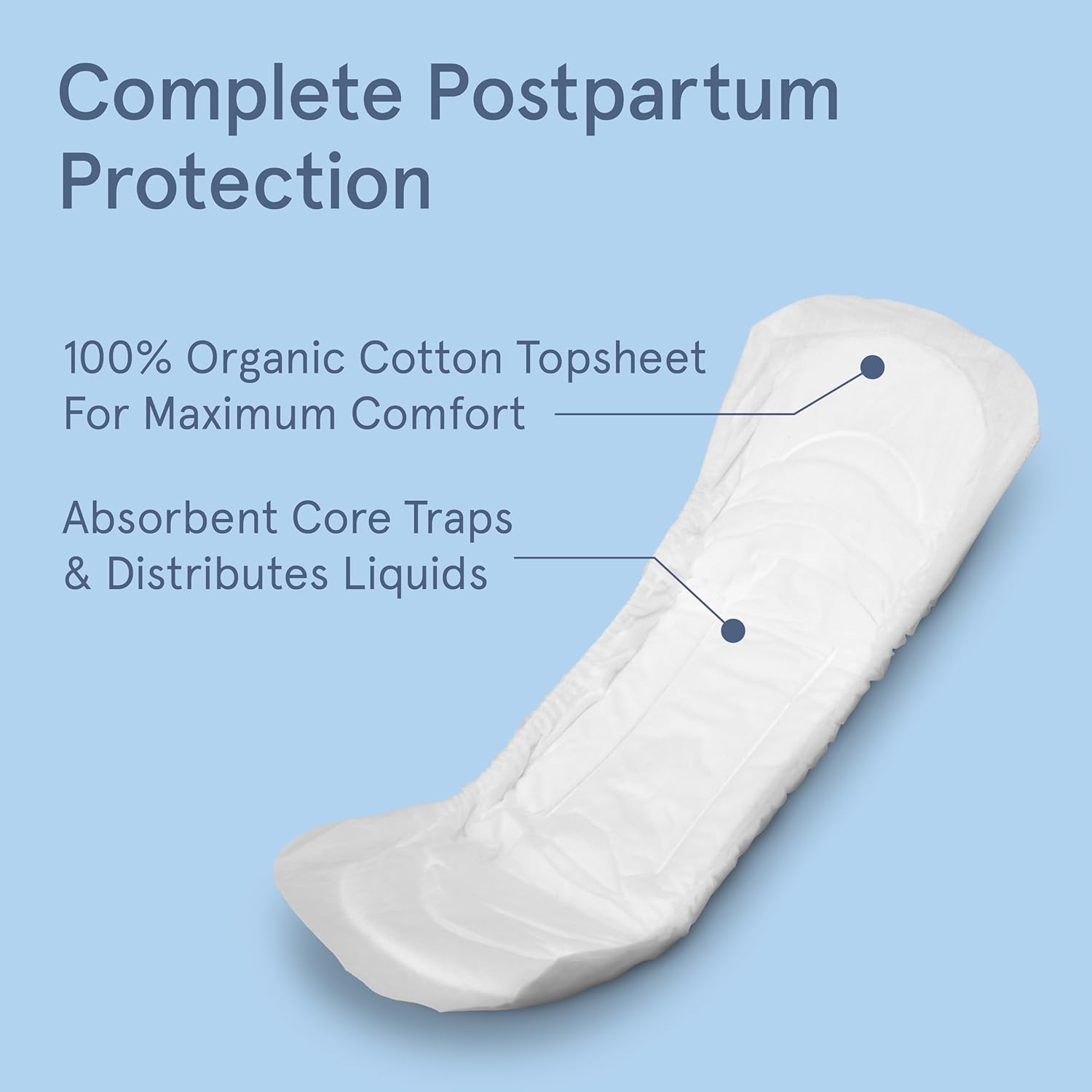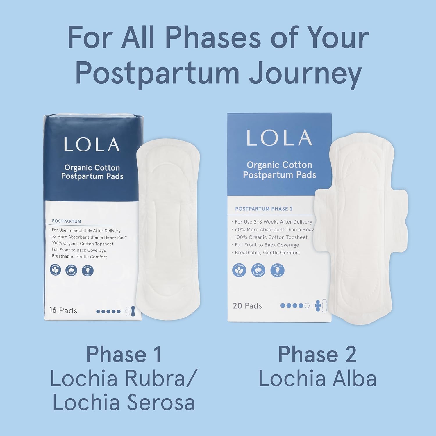 LOLA Organic Cotton Postpartum Pads – Max Absorbency Pads for Postpartum Bleeding – Extra-Long Overnight Liners for Women – Hospital Bag Essentials – 32 Count, Unscented