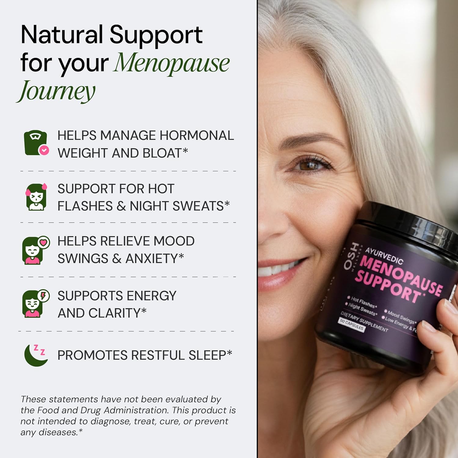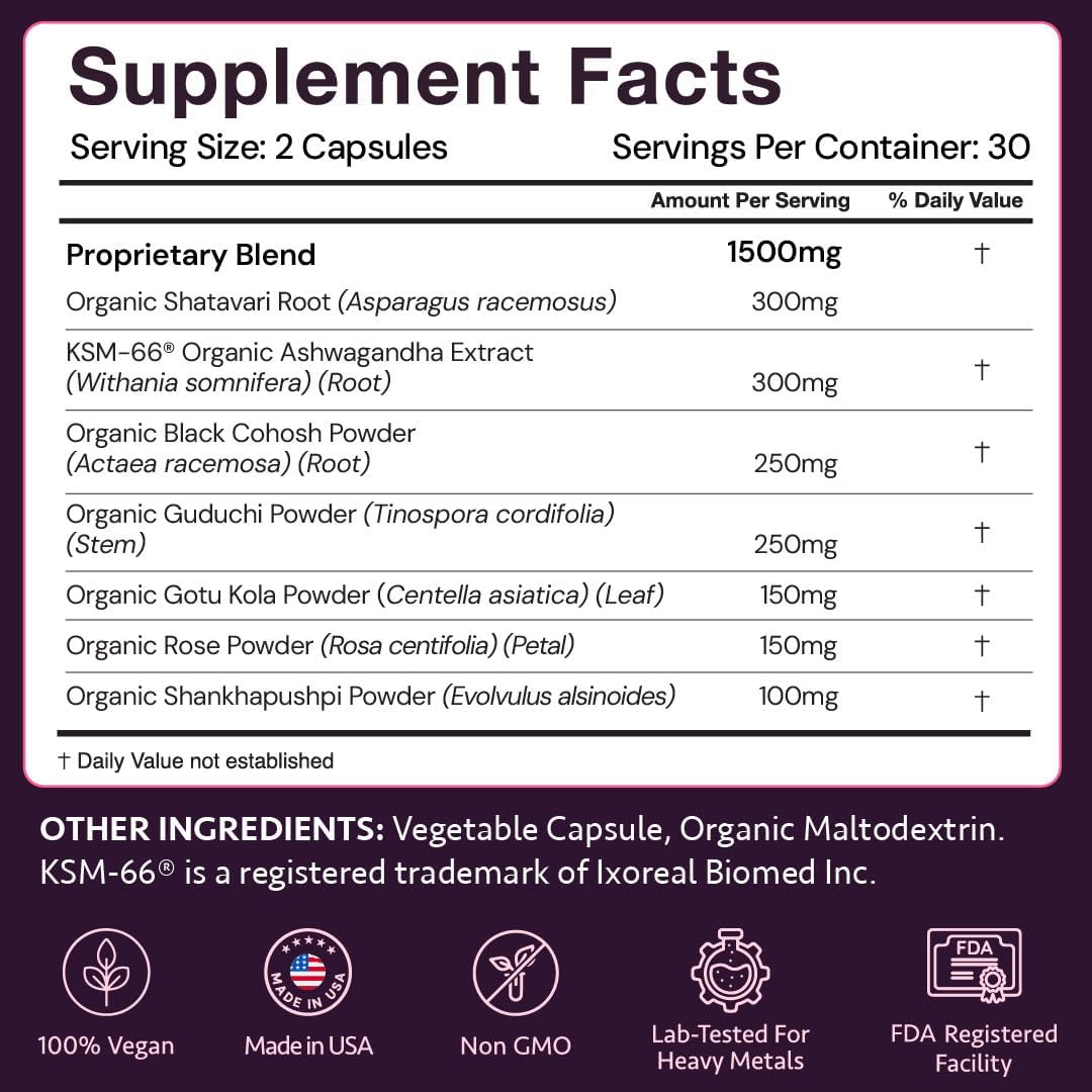 Menopause Supplements for 45+ Women | Hot Flash, Night Sweat & Mood Swing Relief | Ayurvedic Herbal Blend with Shatavari, Ashwagandha, Black Cohosh | Eases Dryness & Boosts Libido | 60 Capsules