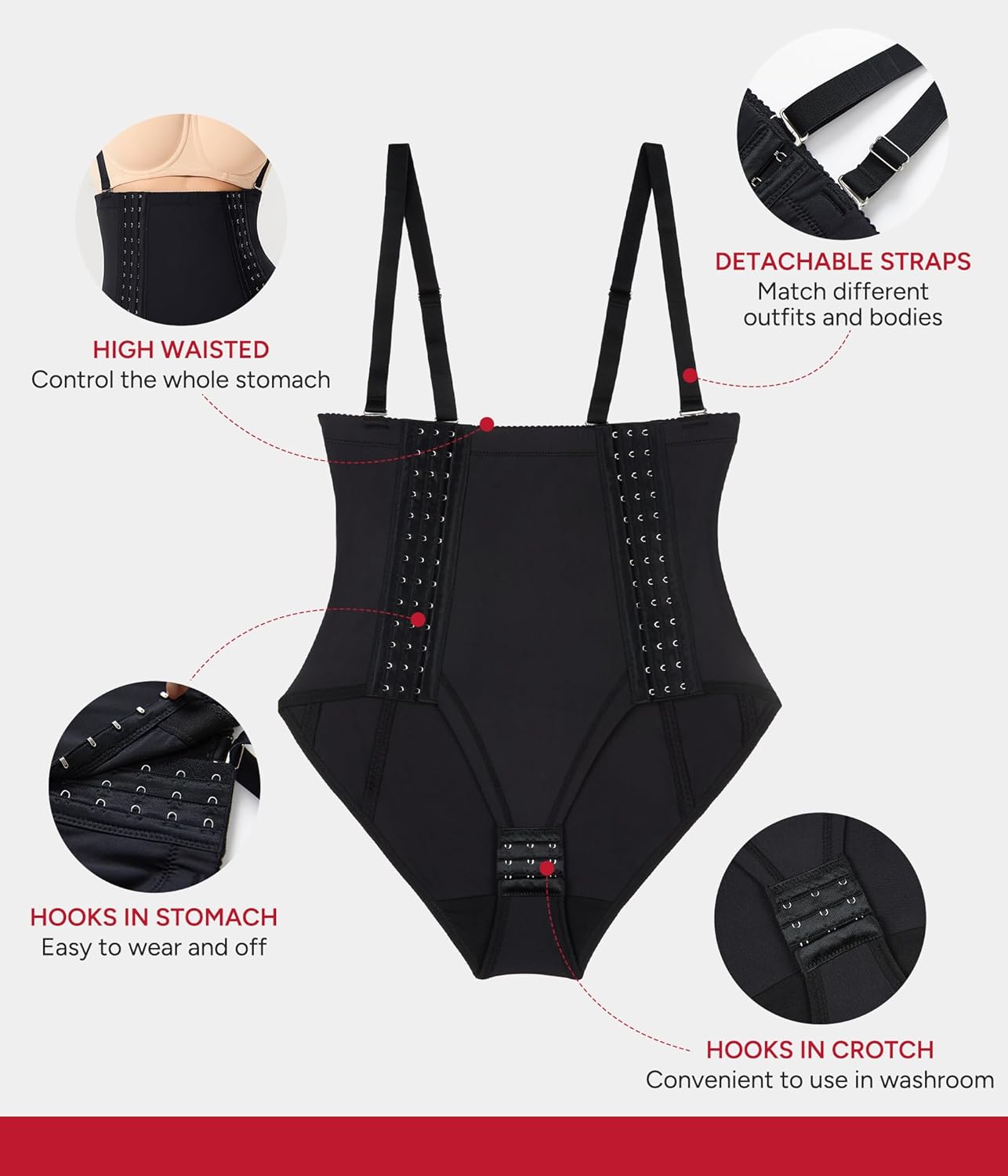 Nebility Tummy Control Shapewear for Women Post Surgery Compression Garment Postpartum Body Shaper with Removable Straps