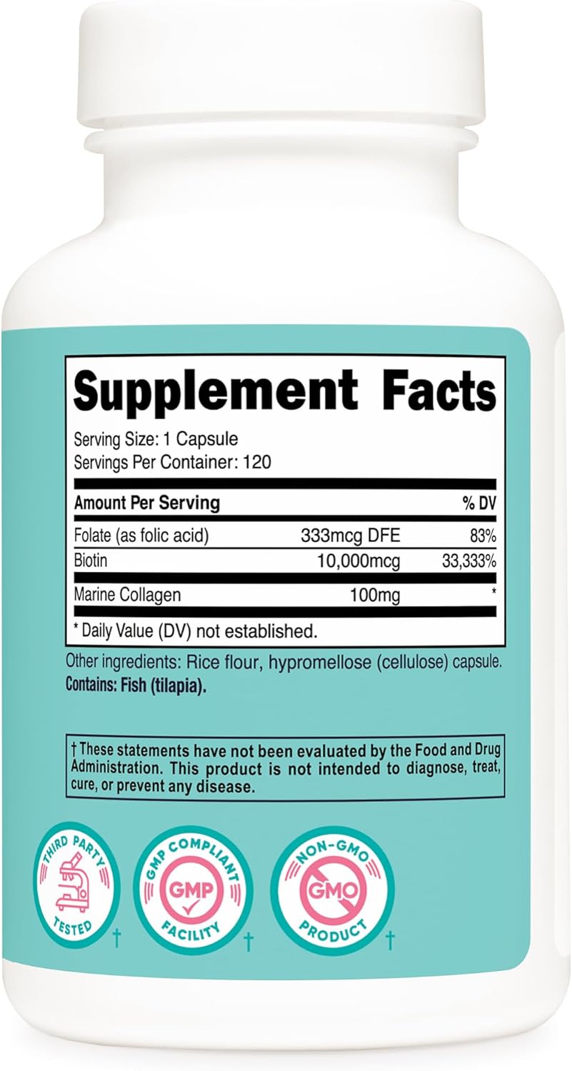 Nutricost Biotin for Women 10,000mcg 120 Capsules – with Folate & Collagen, Gluten Free & Non-GMO
