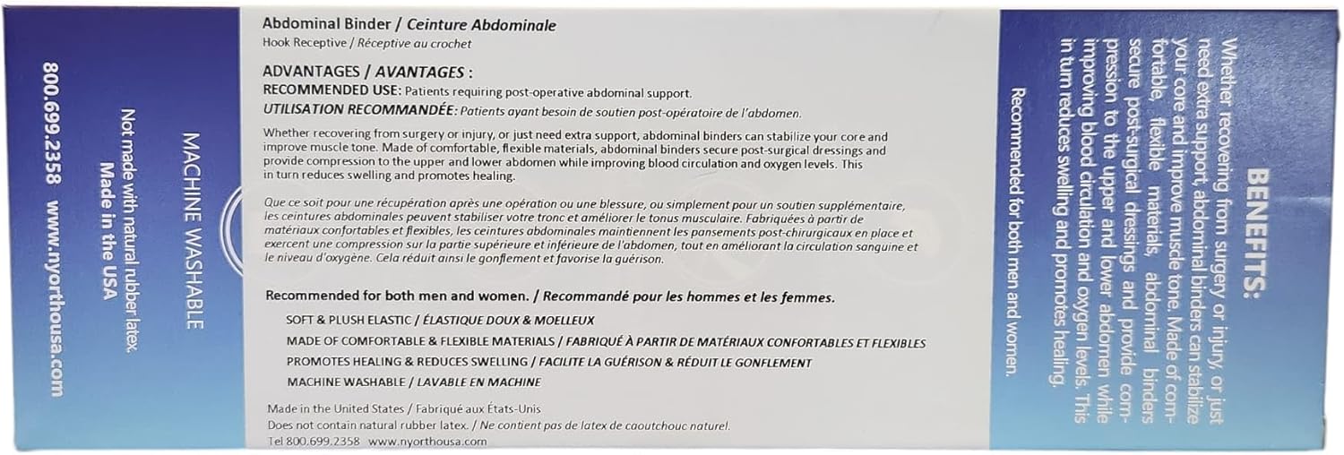 NYOrtho Abdominal Binder 9″ 3-Panel – Unisex Post-Surgery Compression Support Belt for Men and Women – Abdominal Wrap for Hernia, Back Pain, Muscle Strain – Latex-Free – Made in USA (60″-75″)