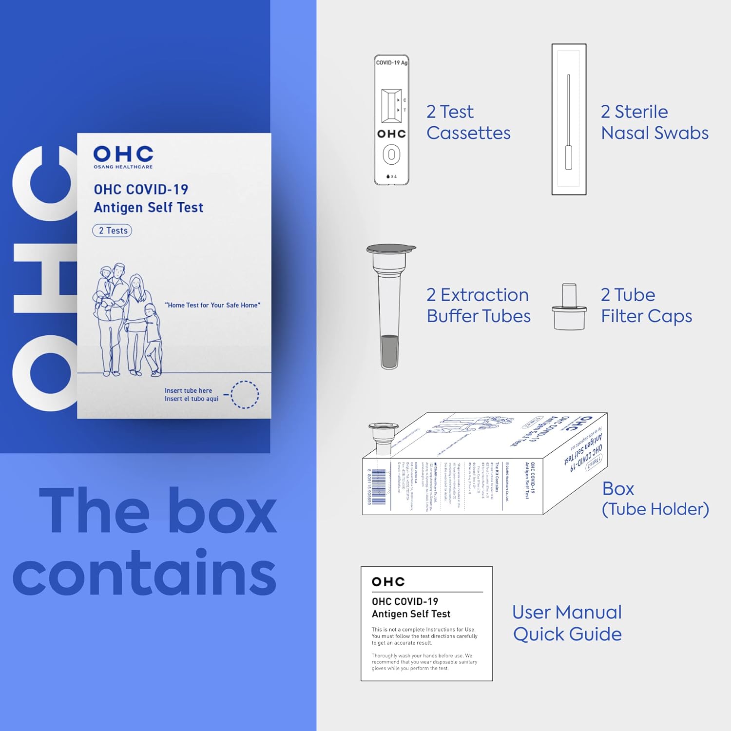 OHC COVID-19 At Home Antigen Self Test for SARS-CoV-2, Omicron & Delta – 15 Minute Results, Nasal Swab, Ages 2+, 2 Tests per Box
