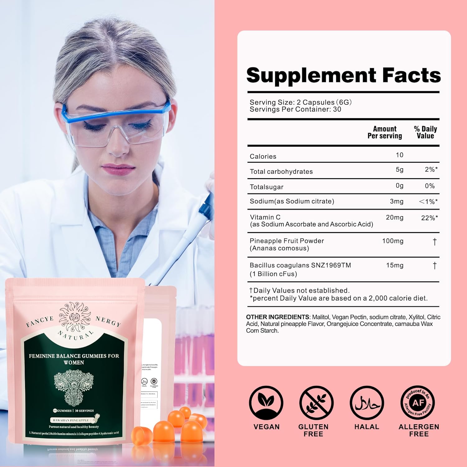 Premium Feminine Balance Gummies for Women – Hawaiian Pineapple Gummies for Women ph, Support Probiotic – Immune Health – Gluten-Free with Vegetarian Friendly – Vitamin C – 60 Count