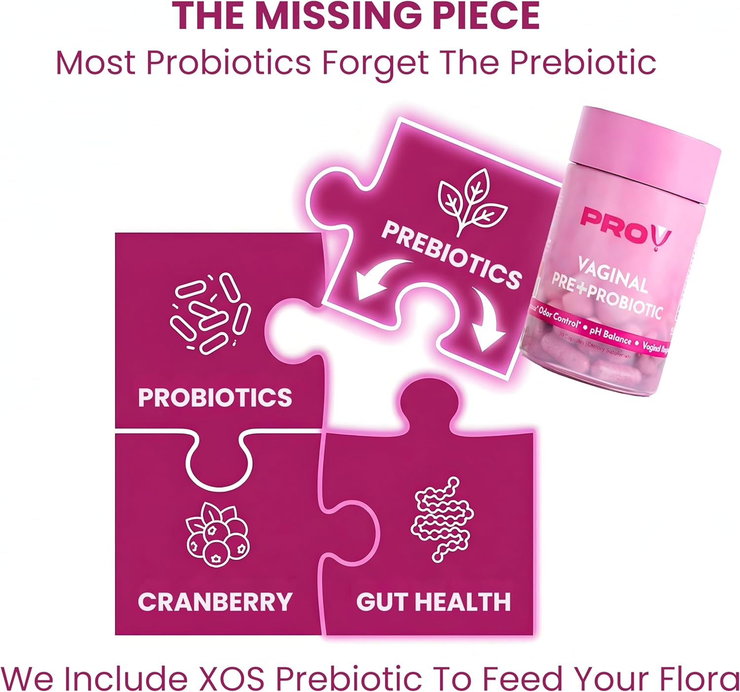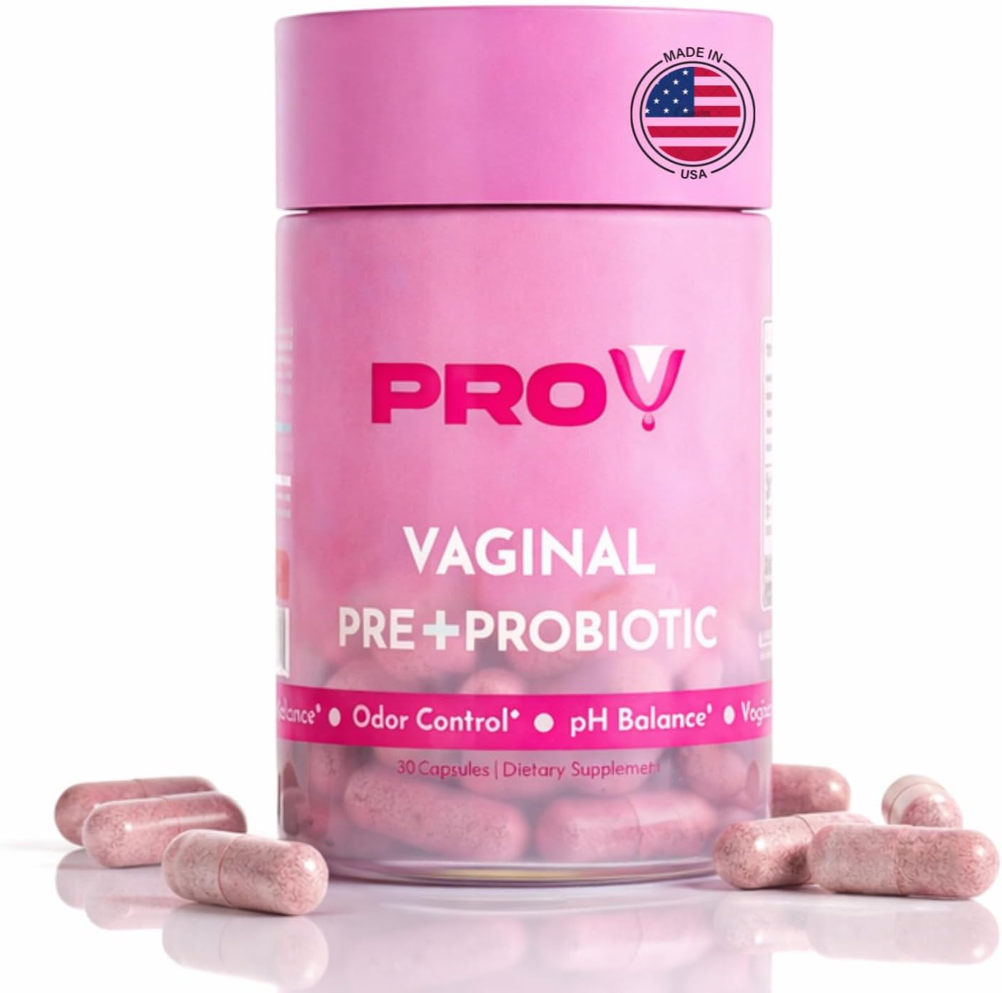 Pro-V Women’s Probiotic with Prebiotics & Cranberry – 4-in-1 Synbiotic for Vaginal Health, pH Balance, Odor & Urinary Tract Support – Daily Feminine Microbiome Supplement – 30 CT