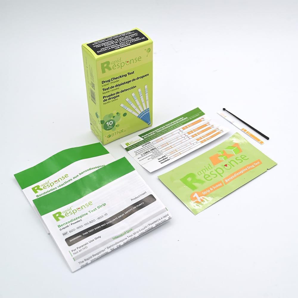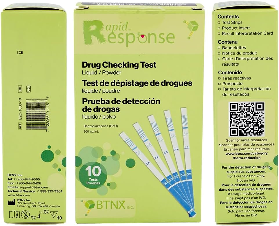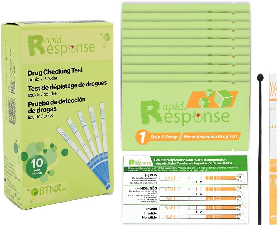 Rapid Response Benzodiazepine Test Strip Drug Checking Test for Liquid and Powder Substances, Quick Results in Minutes, Easy to Use, High Sensitivity – 10 Tests