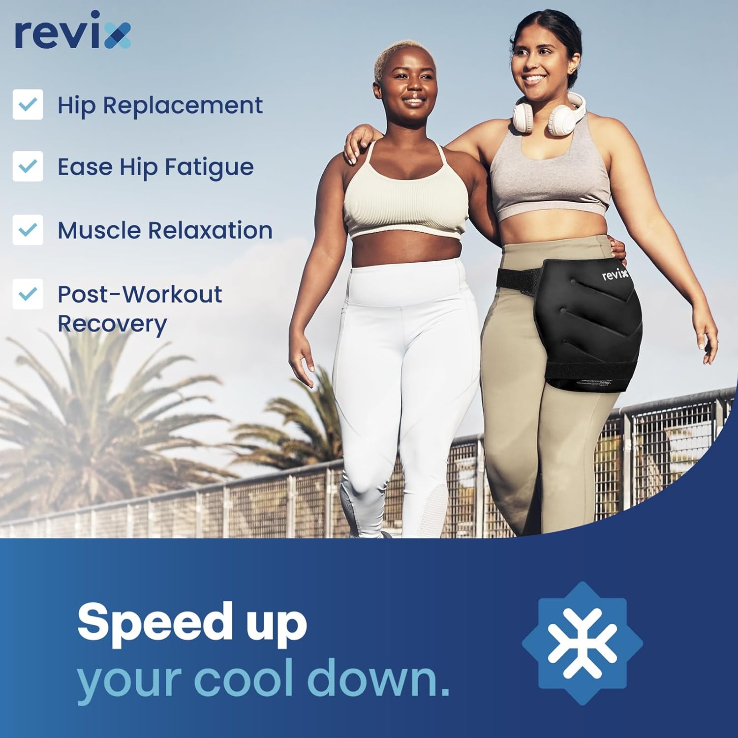 REVIX Extra Large Hip Ice Pack Wrap After Surgery, Reusable Gel Cold Pack for Hip Replacement Recovery, Sciatic Nerve, Cold Therapy Hip Flexor Compression Wrap, Black