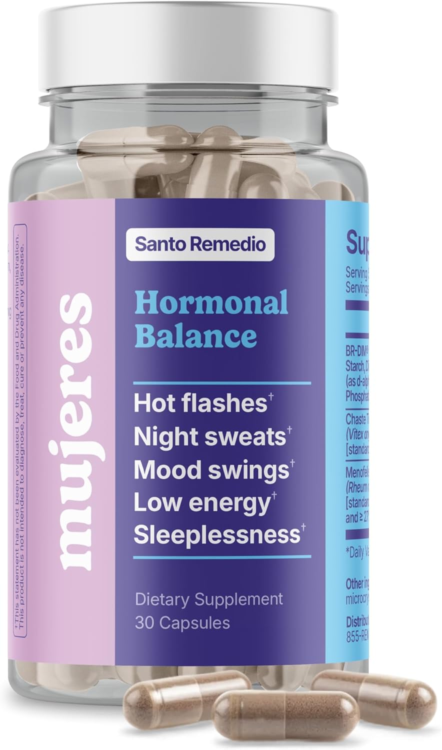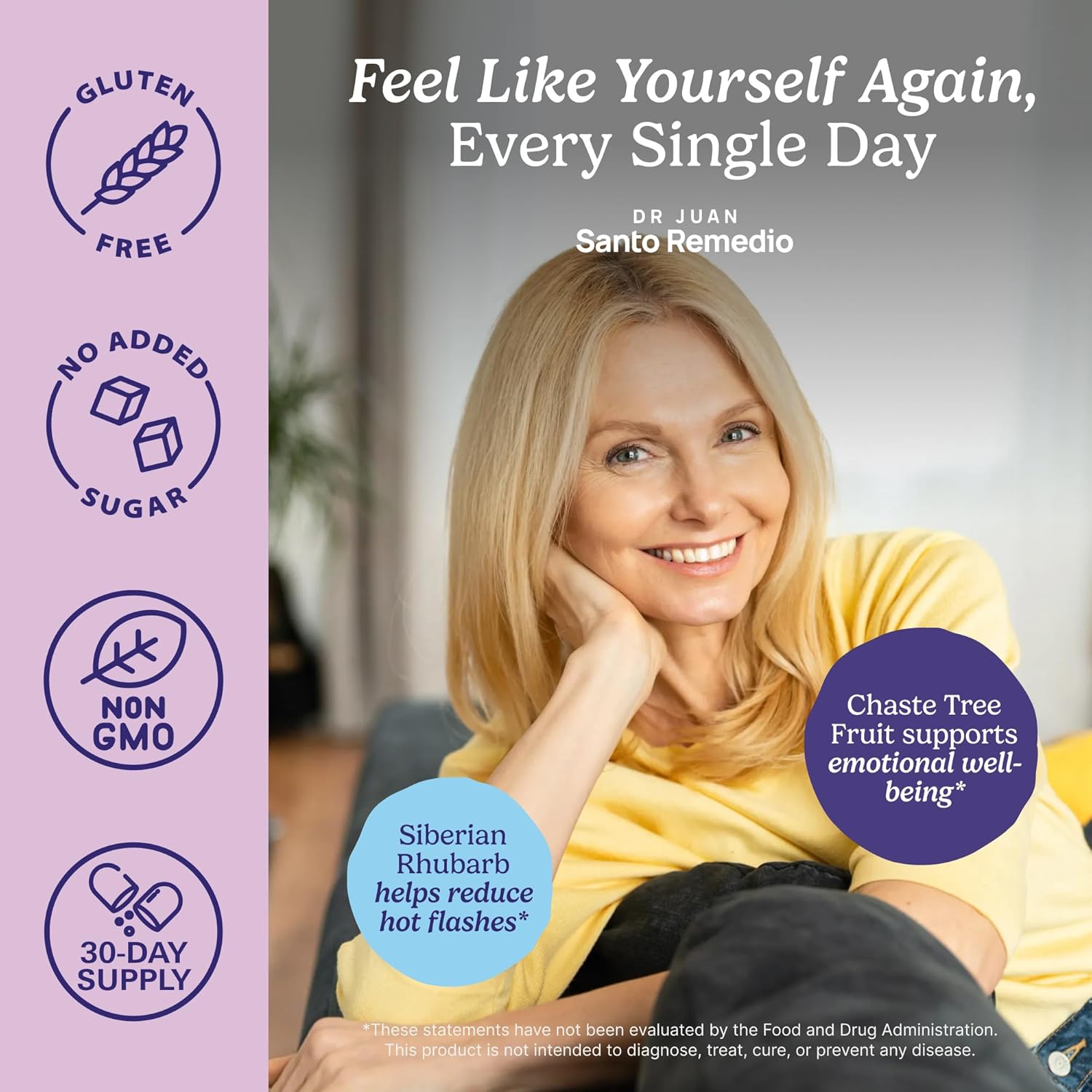 Santo Remedio Hormonal Balance for Women | Menopause Support for Hot Flashes, Night Sweats & Mood Swings | Hormone-Free Formula with Siberian Rhubarb, Chaste Tree & DIM | Doctor Juan Rivera Product