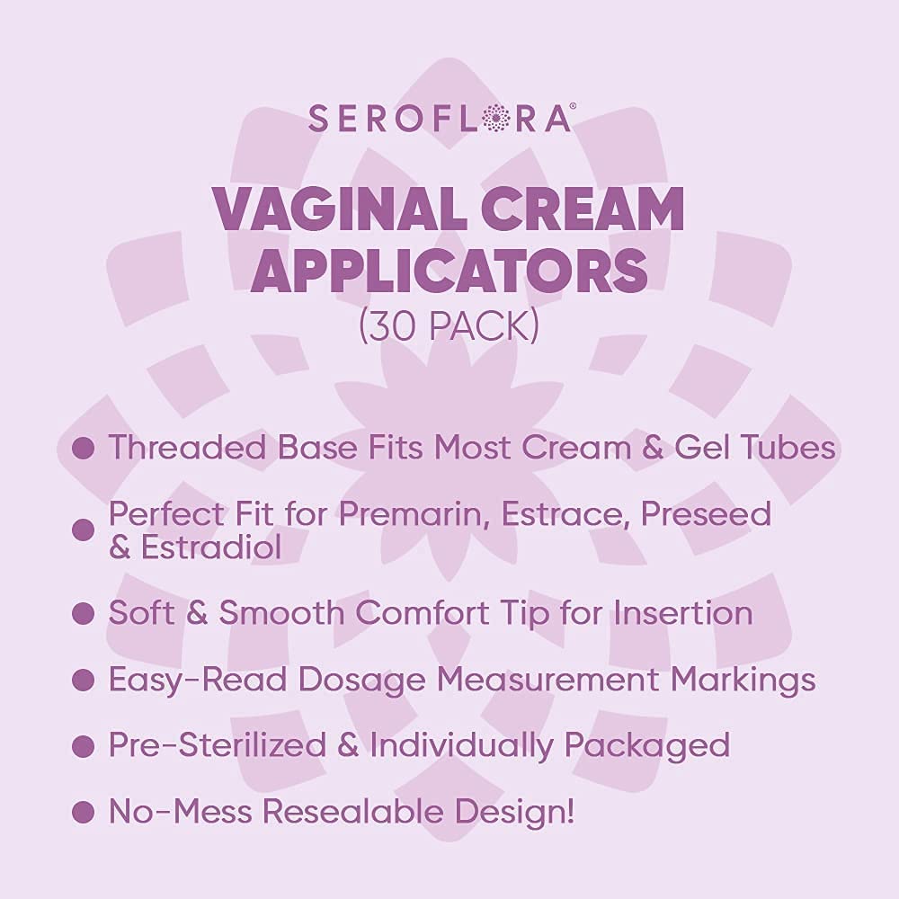 Seroflora Disposable Vaginal Cream Applicators – Fits Premarin, Estrace, Preseed and Most OTC Gels, Lubricants, and Creams – Threaded End, Comfort Tip, and Dosage Markings (30 Pack) Made in USA.