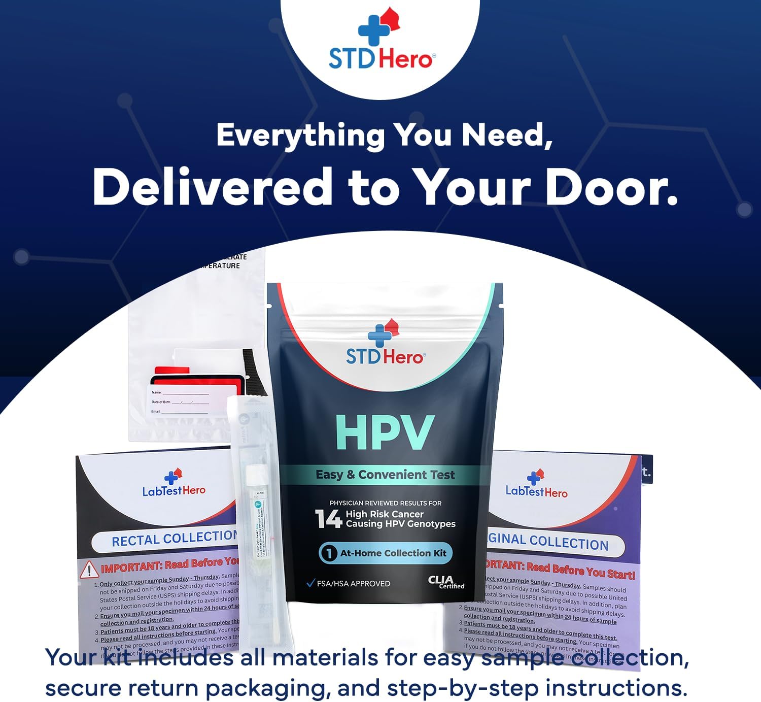 STD Hero at-Home HPV & Oral HPV Test Bundle – Easy Private Screening Kit for Men & Women, Discreet at-Home Use