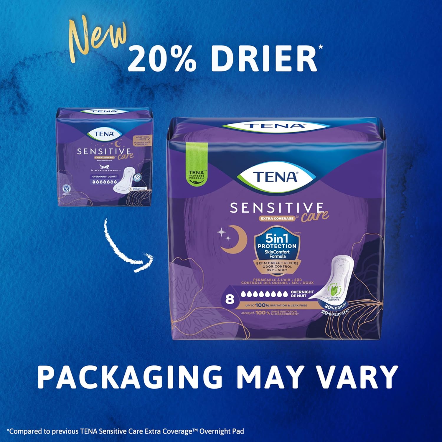 TENA Sensitive Care Incontinence Pads, Bladder Control & Postpartum for Women, Overnight Absorbency, Extra Coverage – 90 Count