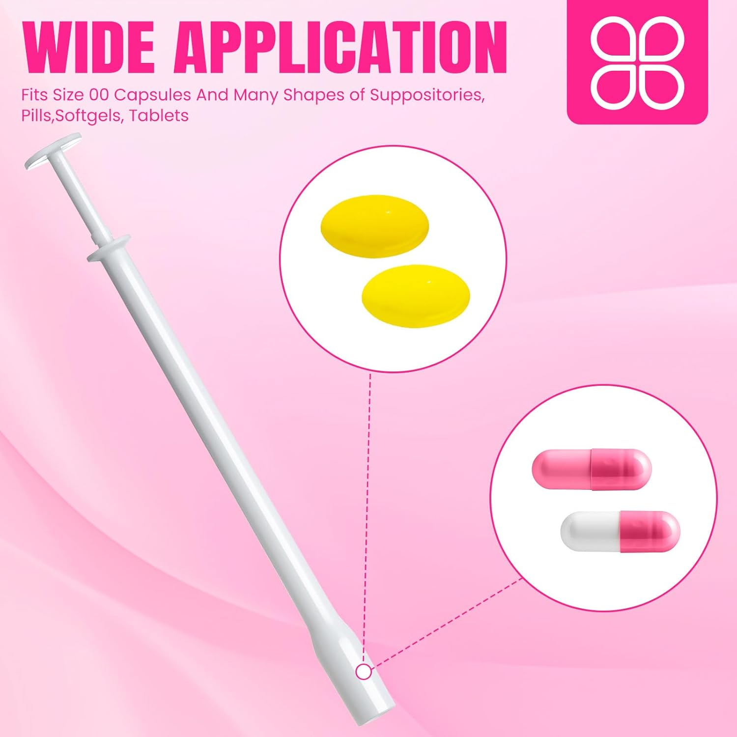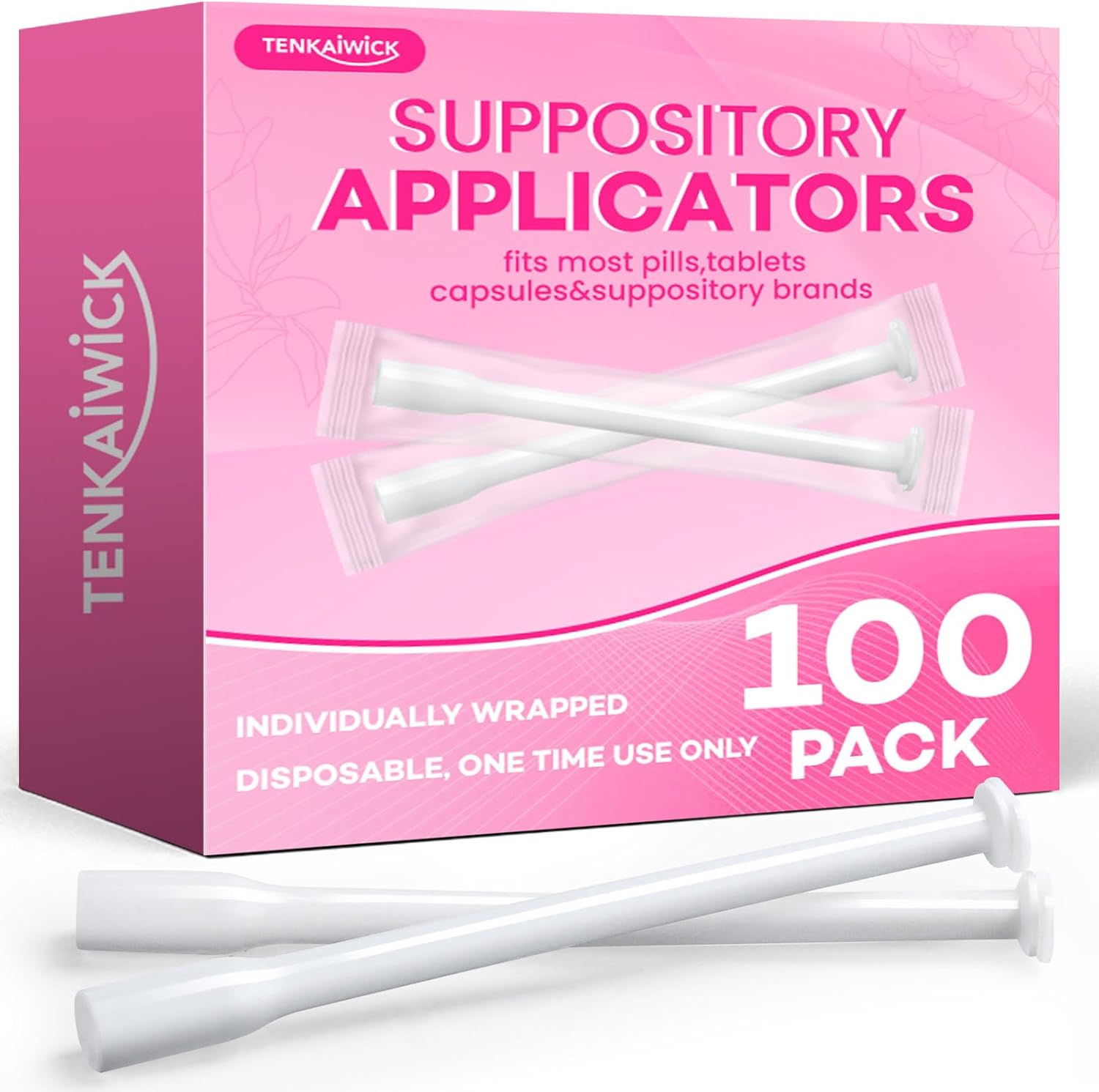 TENKAIWICK 100 Pack Disposable Vaginal Suppository Applicator for Women, Vaginal Applicator fits Size 0/00 Cap-Sules and Most Pills, Tablet Suppositories, Individually Wrapped