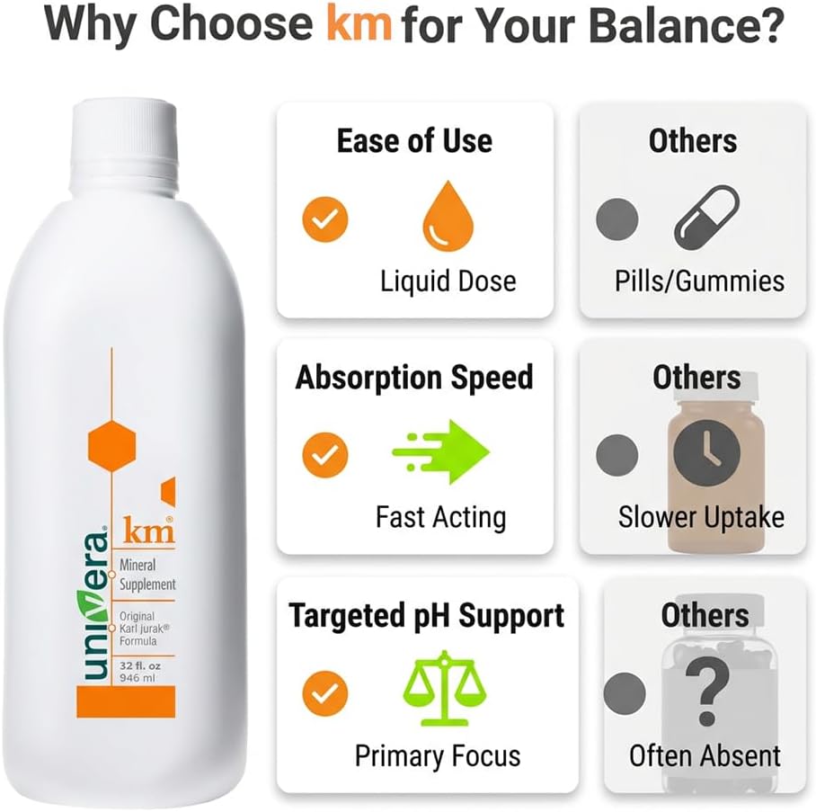 Univera km Liquid Potassium Supplement, pH Balance, Digestion Support, Mineral Supplements with Magnesium, Original Karl Jurak Formula, 32 fl oz (30-Day Supply)